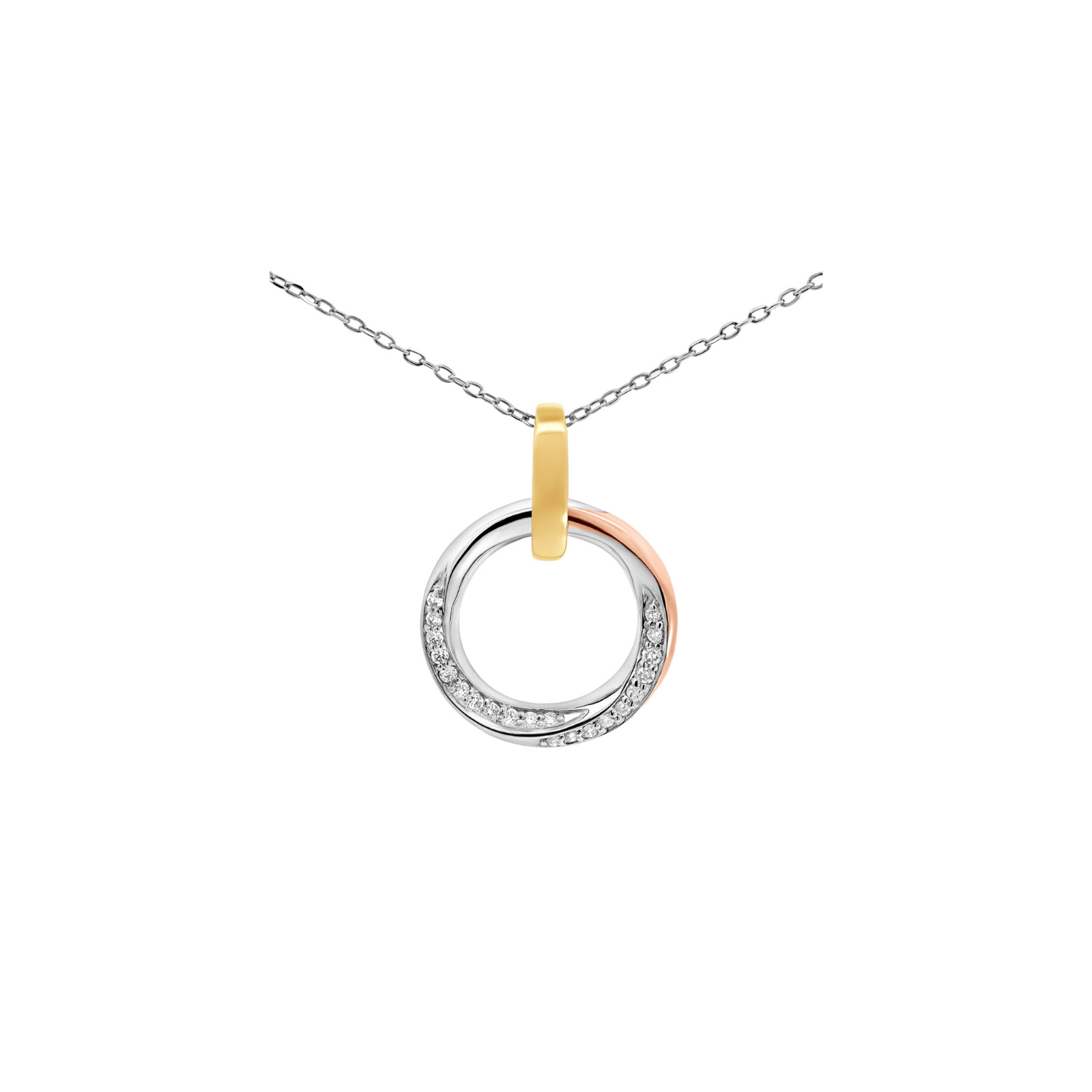 9ct 3 Tone Diamond Set Open Circle Pendant