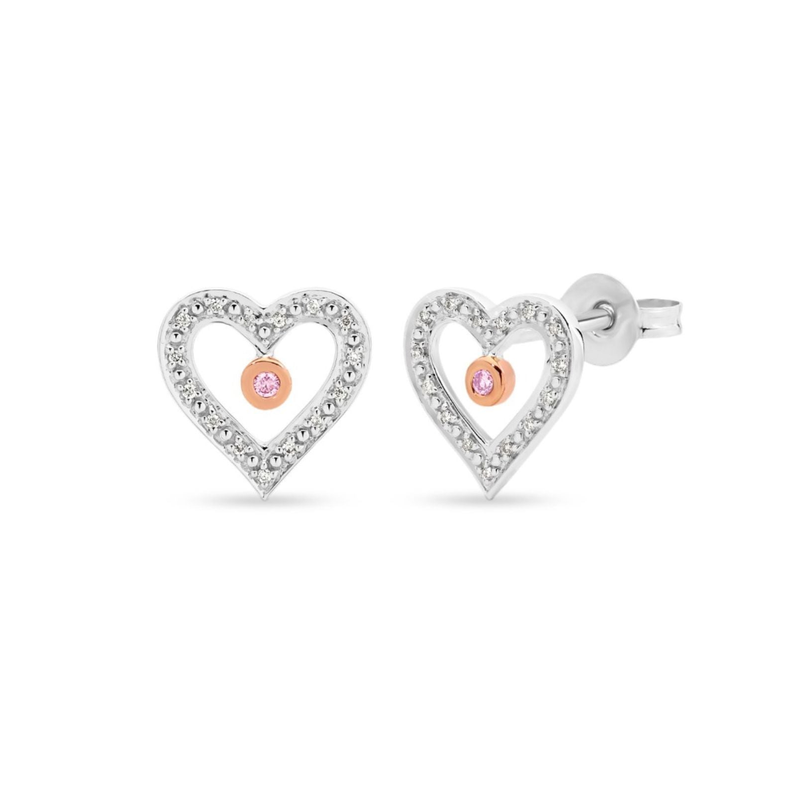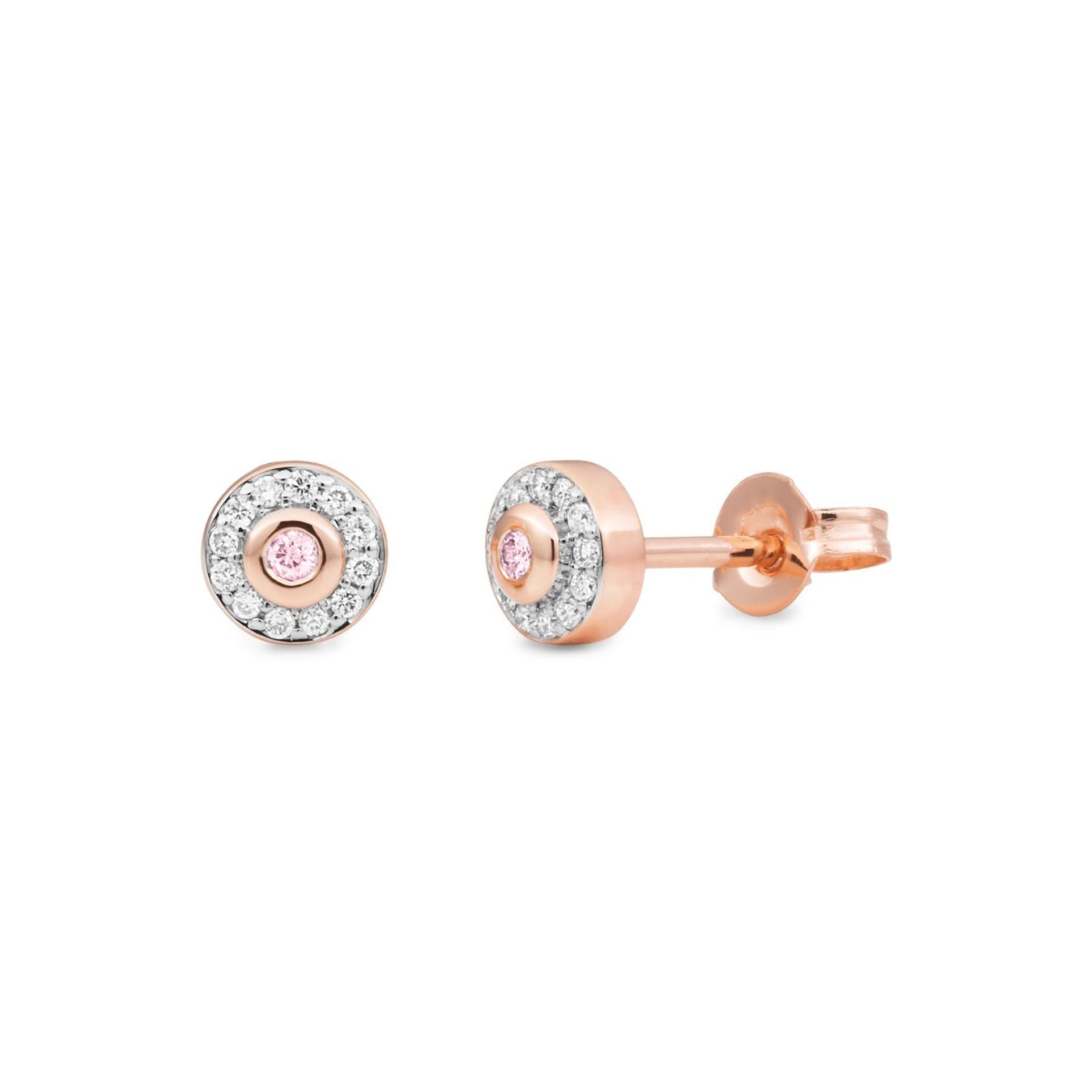 9ct Rose Gold Australian Pink And White Diamond Set Earrings