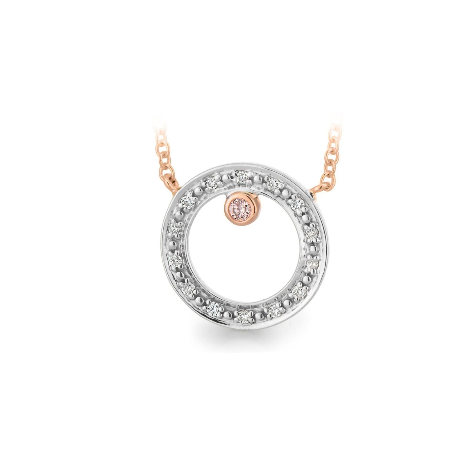 9ct Two Tone Australian Pink Diamond Set Circle Necklace