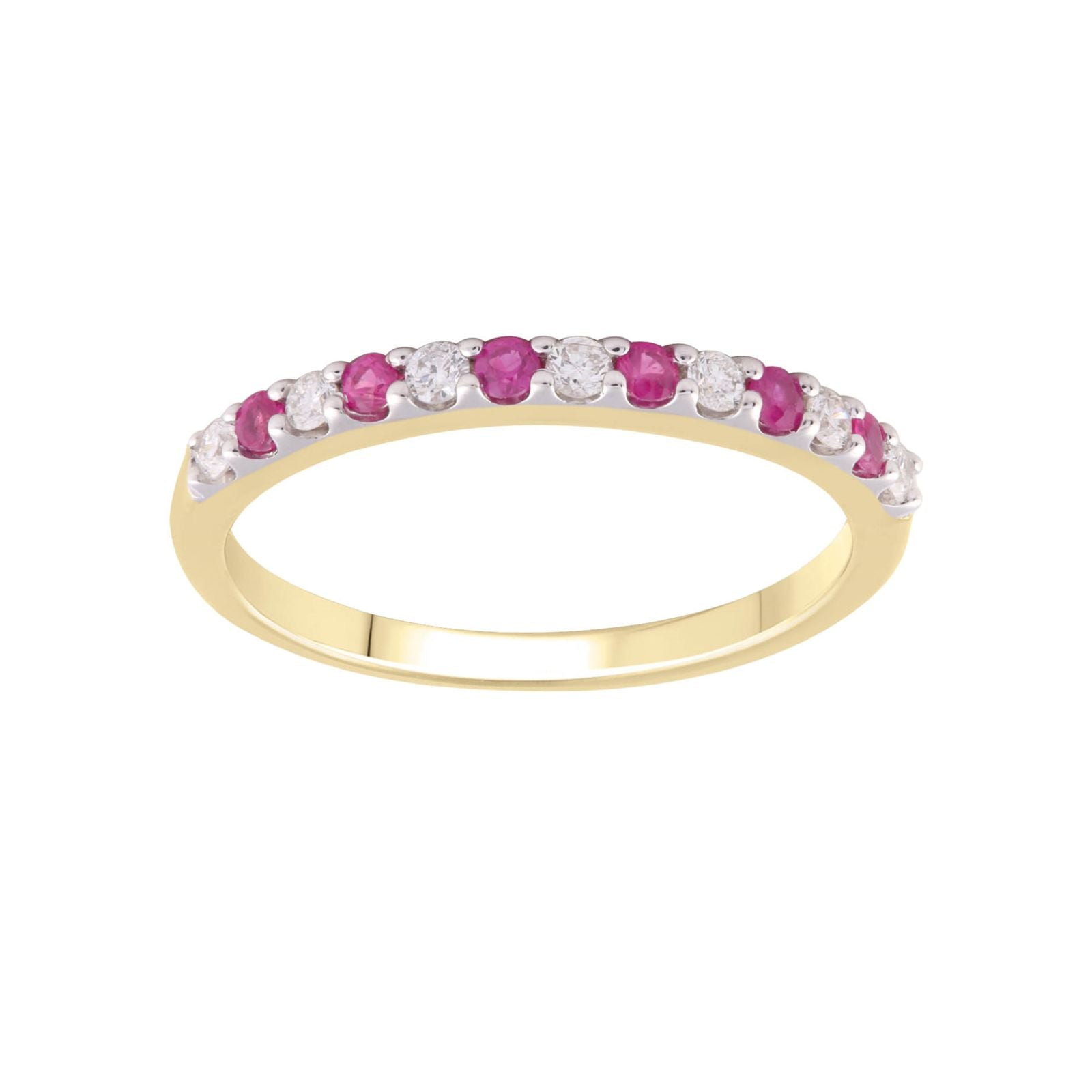 9ct Yellow Gold Ruby & Diamond Band Ring