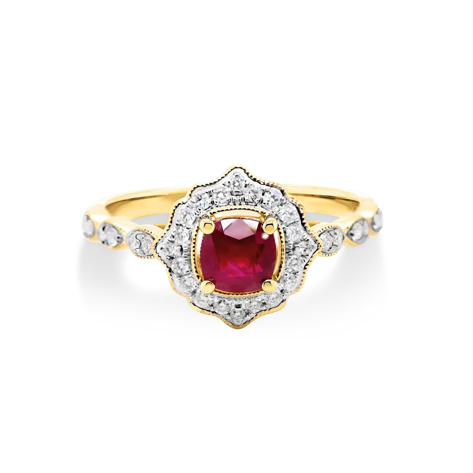 9ct Yellow Gold Art Deco Ruby & Diamond Ring