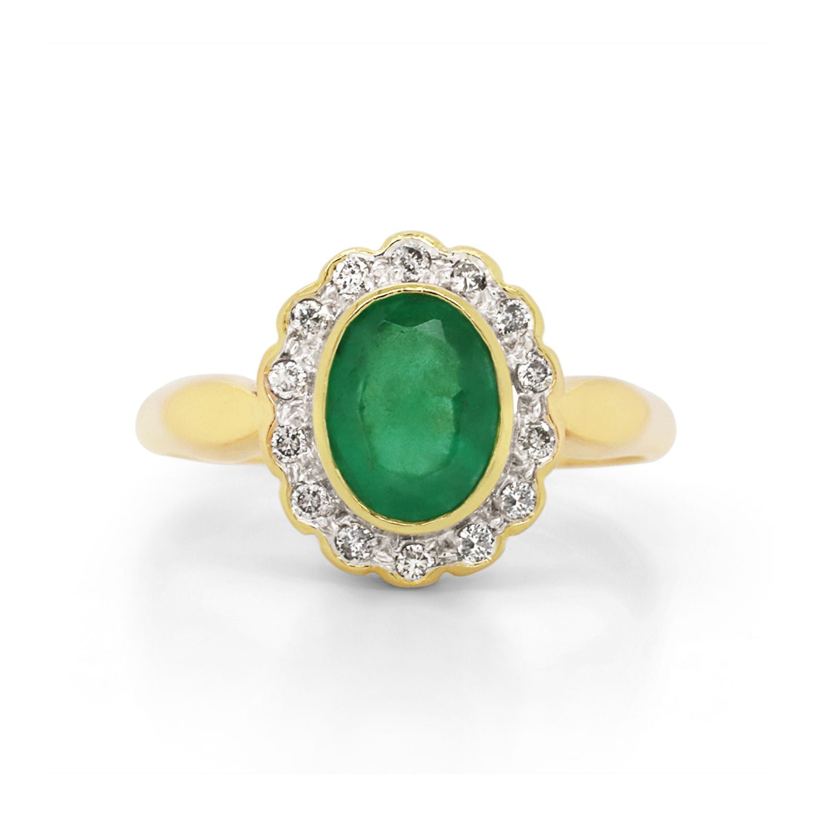 18ct Yellow Gold Natural Emerald & Diamond Cluster Ring