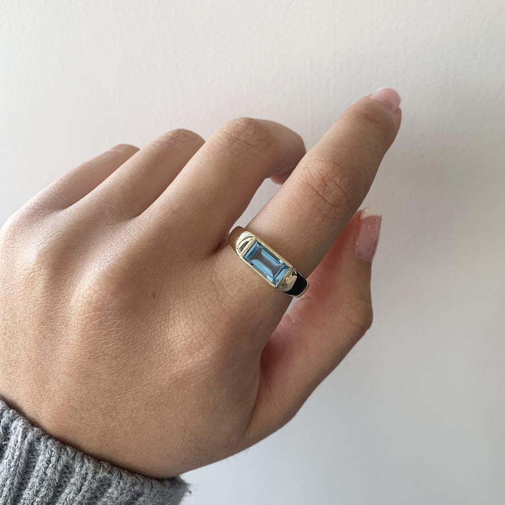 9ct Yellow Gold Rectangle Blue Topaz Ring