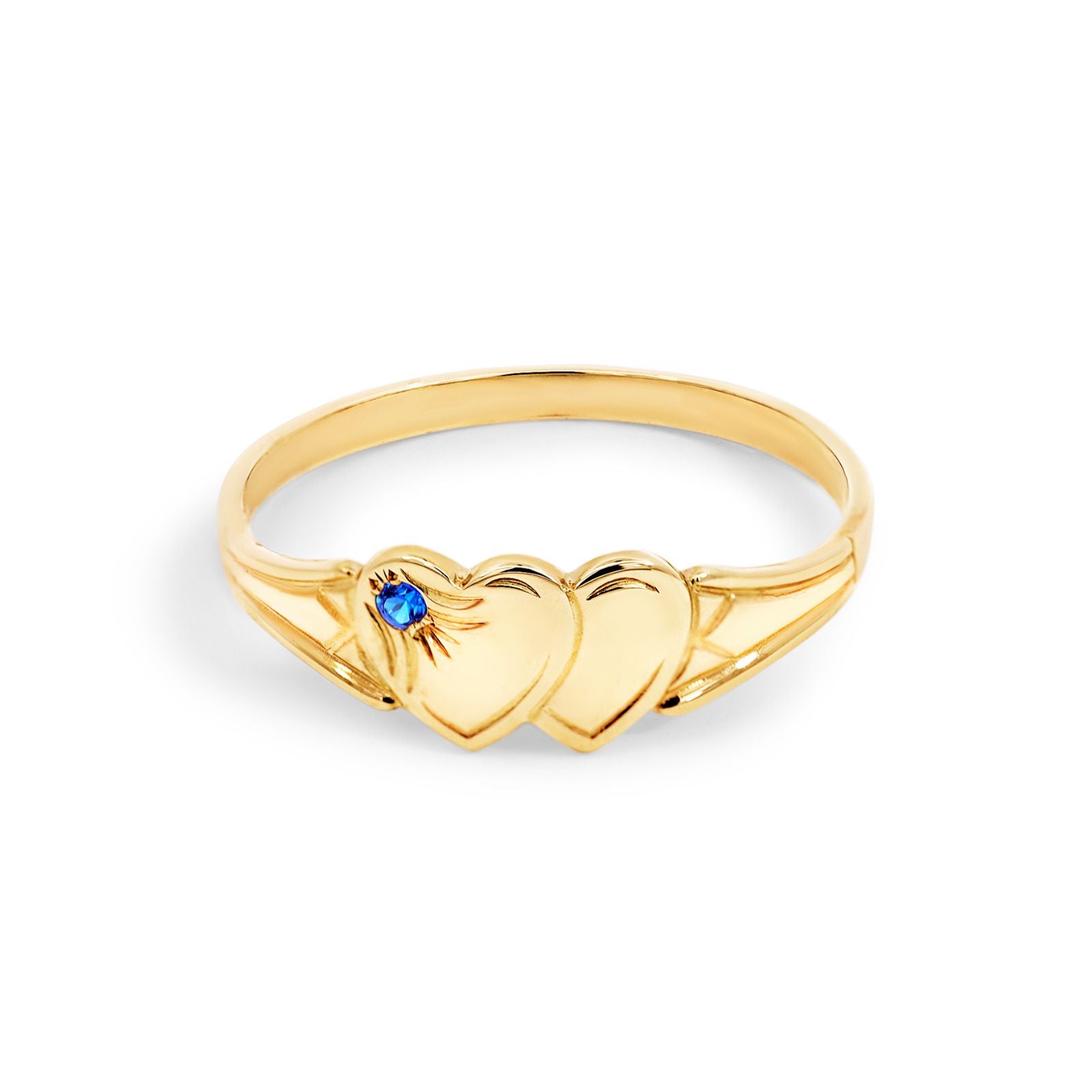 9ct Yellow Gold Double Heart Signet Ring With Blue Spinel