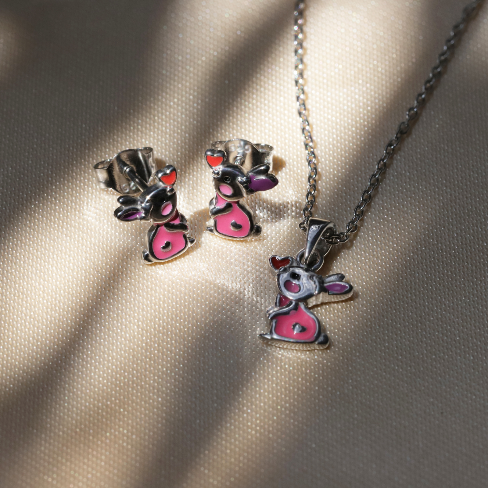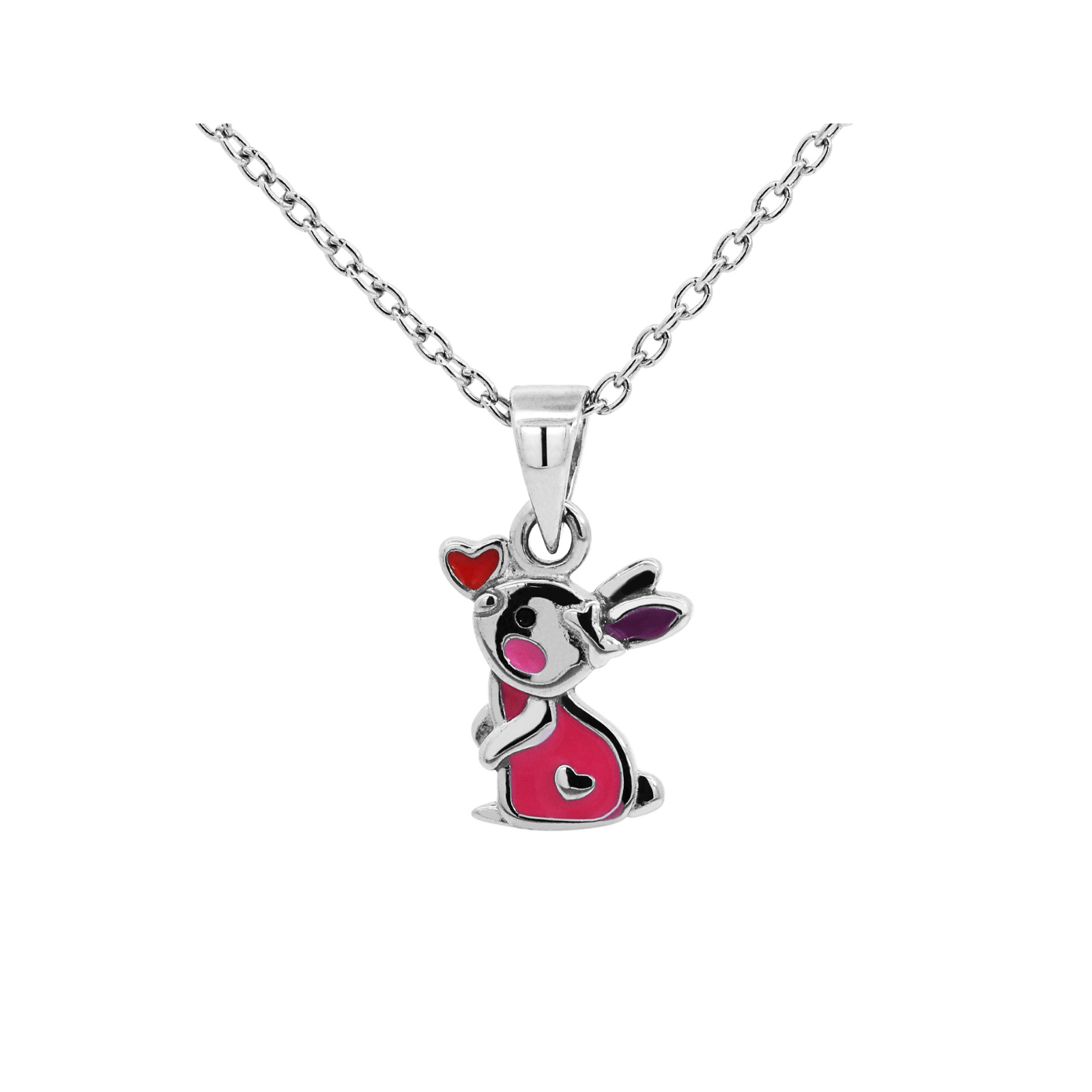 Sterling Silver Enamel Rabbit Pendant With Chain