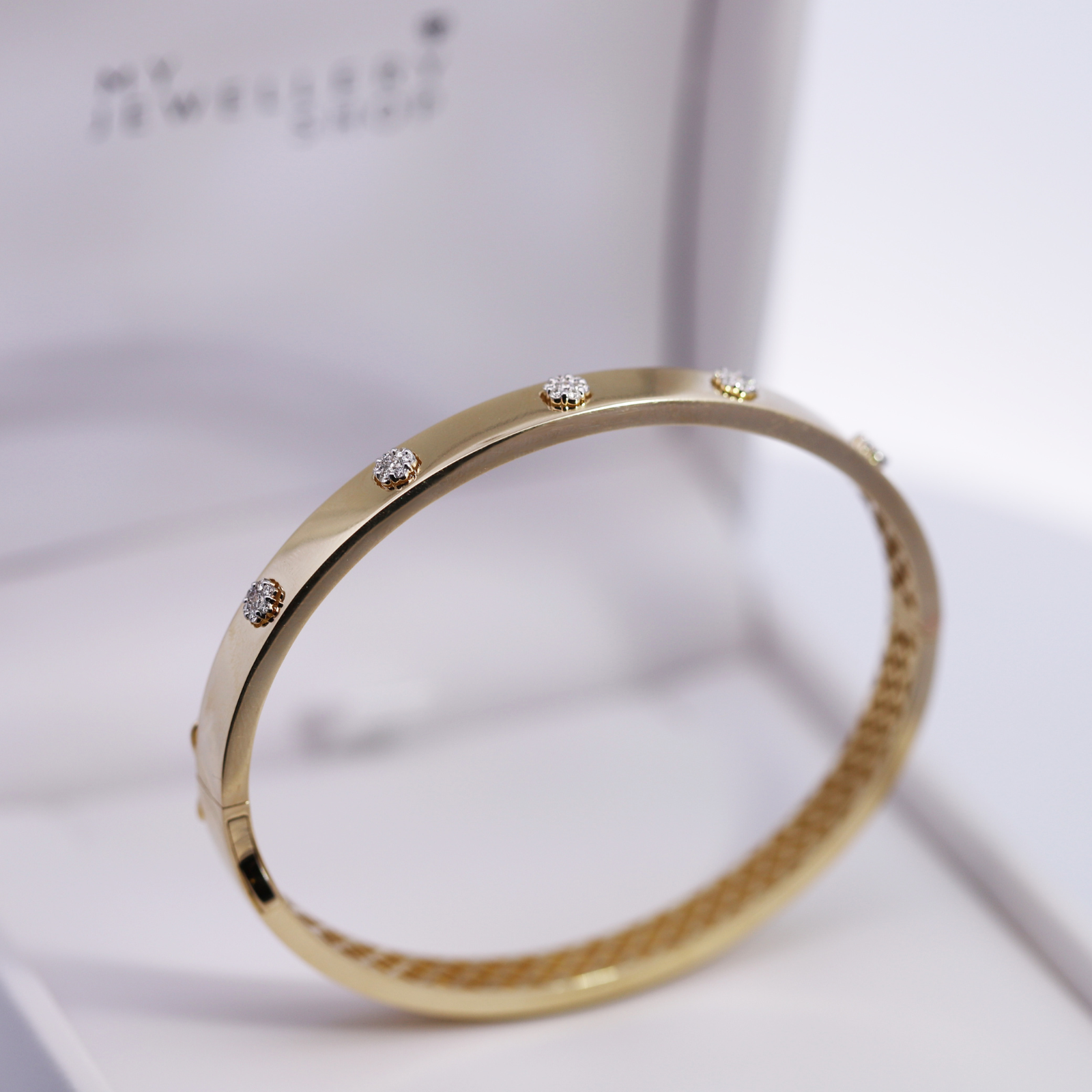 9ct Yellow Gold Hinged Oval Bangle With 5 Diamond Clusters