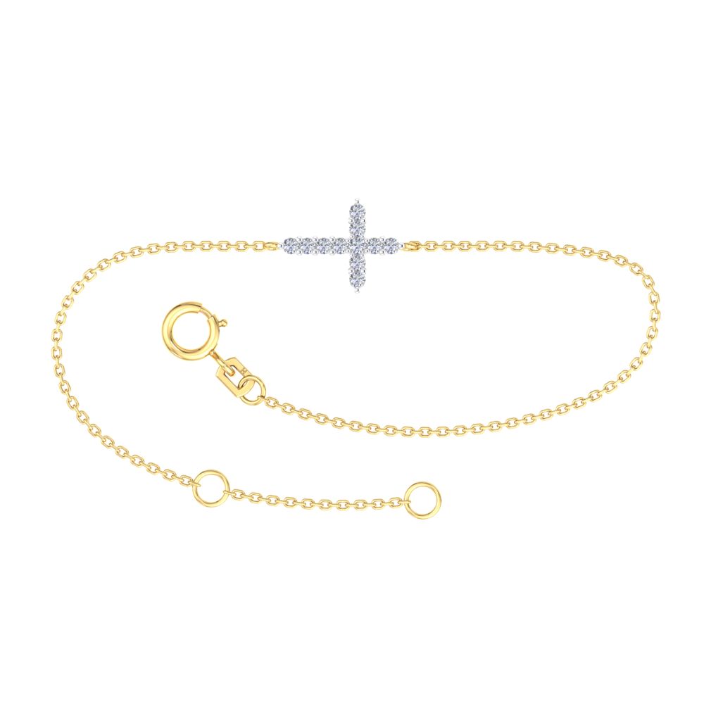 9ct Yellow Gold Fine Chain Bracelet With Diamond Set Cross