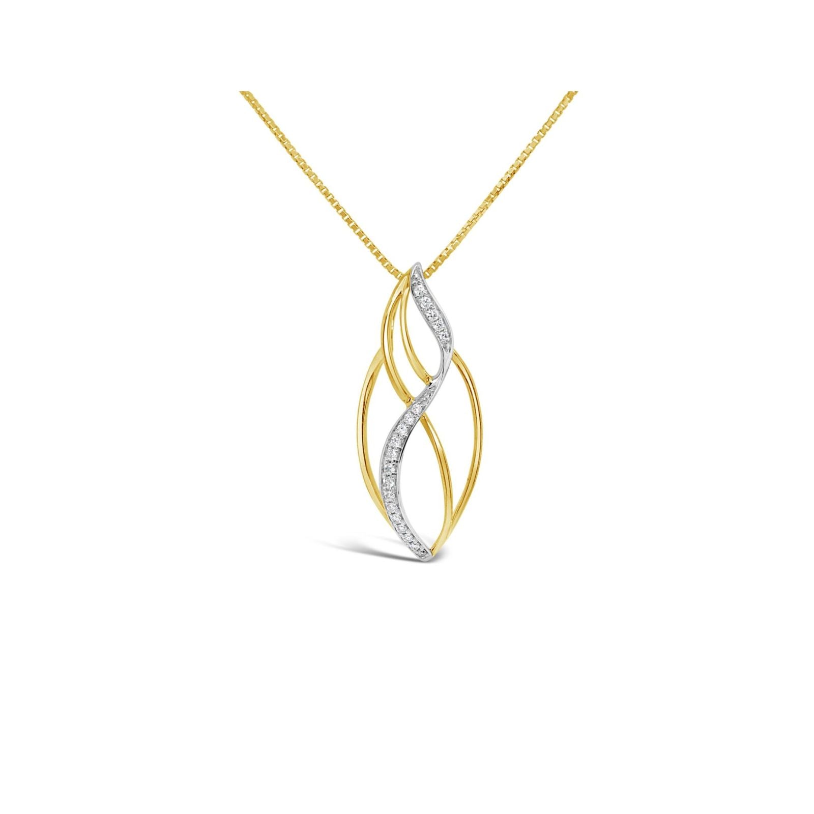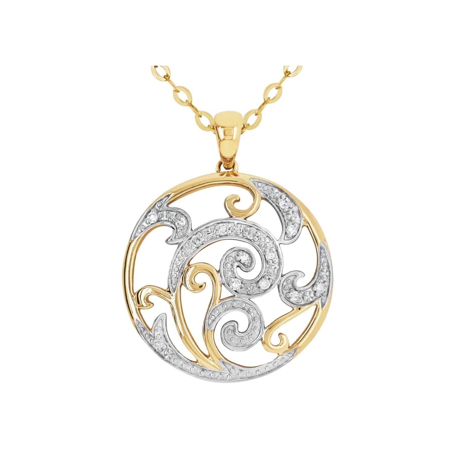 9ct Two Tone Oval Swirl Diamond Set Pendant