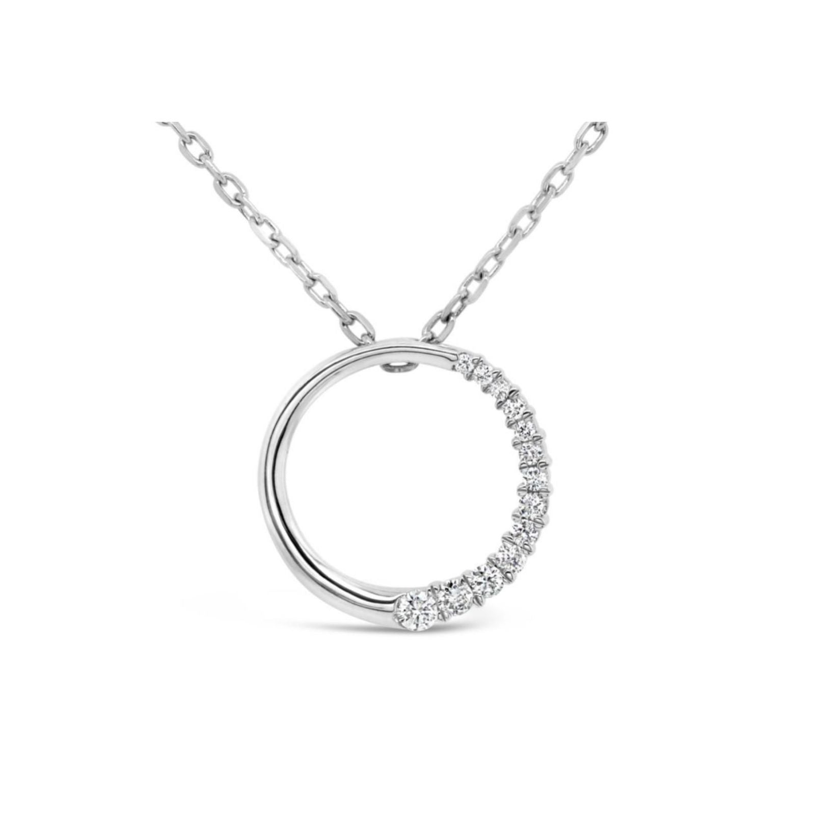 9ct White Gold Claw Set Graduated Diamond Set Circle Pendant