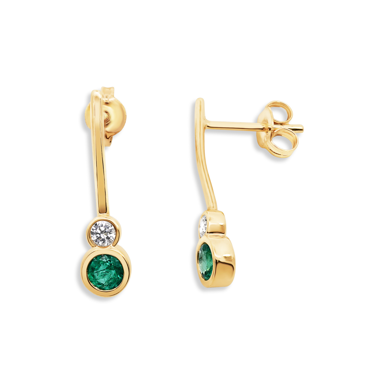 9ct Yellow Gold Emerald & White Sapphire Drop Bar Earrings