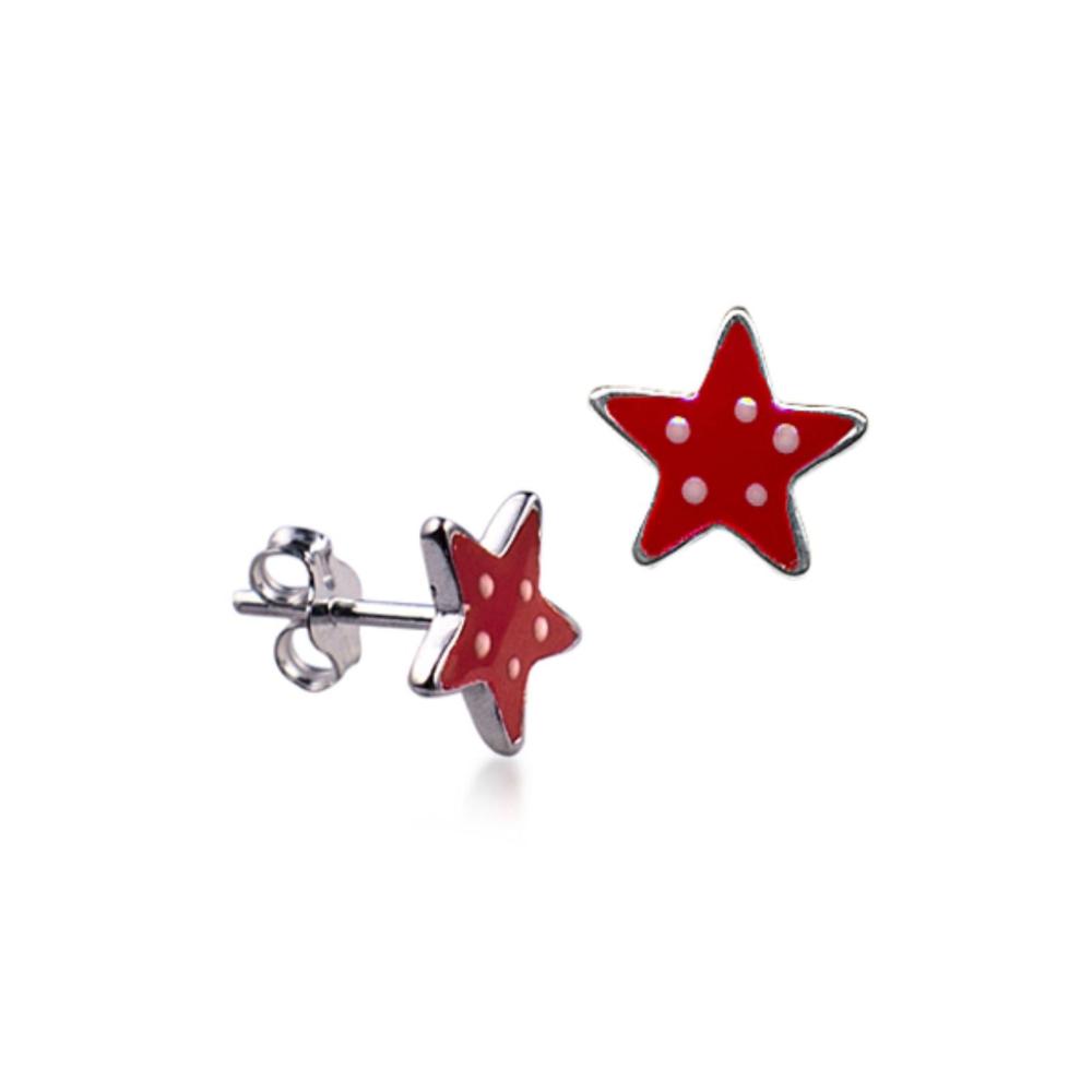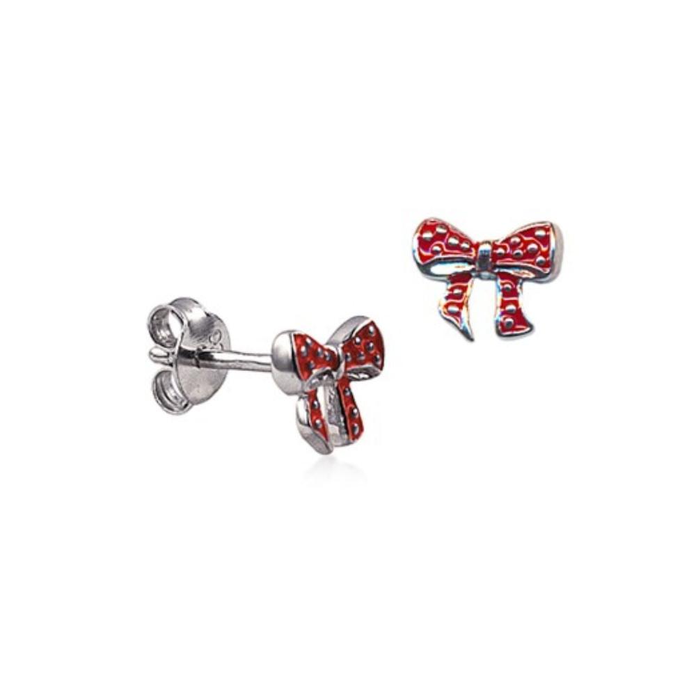 Sterling Silver Red Enamel White Spot Bow Earrings