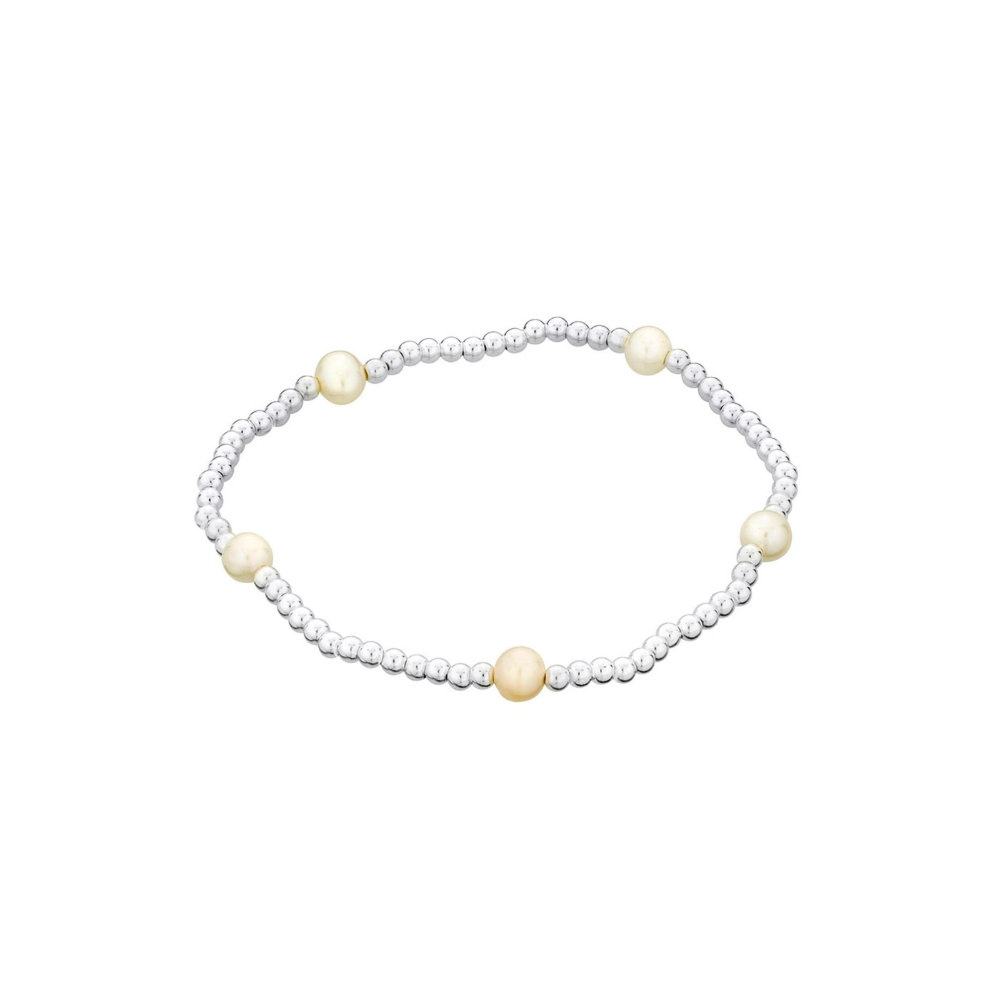Sterling Silver Beaded Bracelet With Light Green Enamel Balls