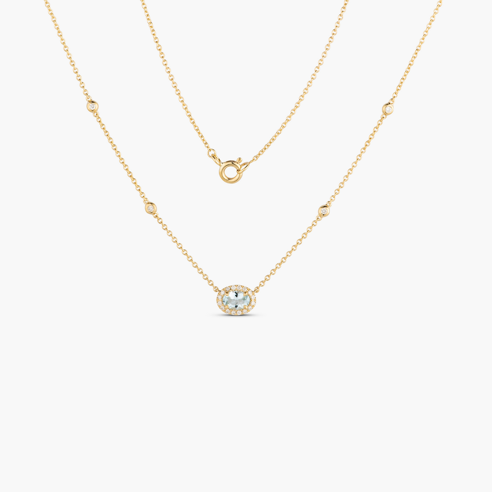 9ct Yellow Gold Aquamarine And Diamond Necklace