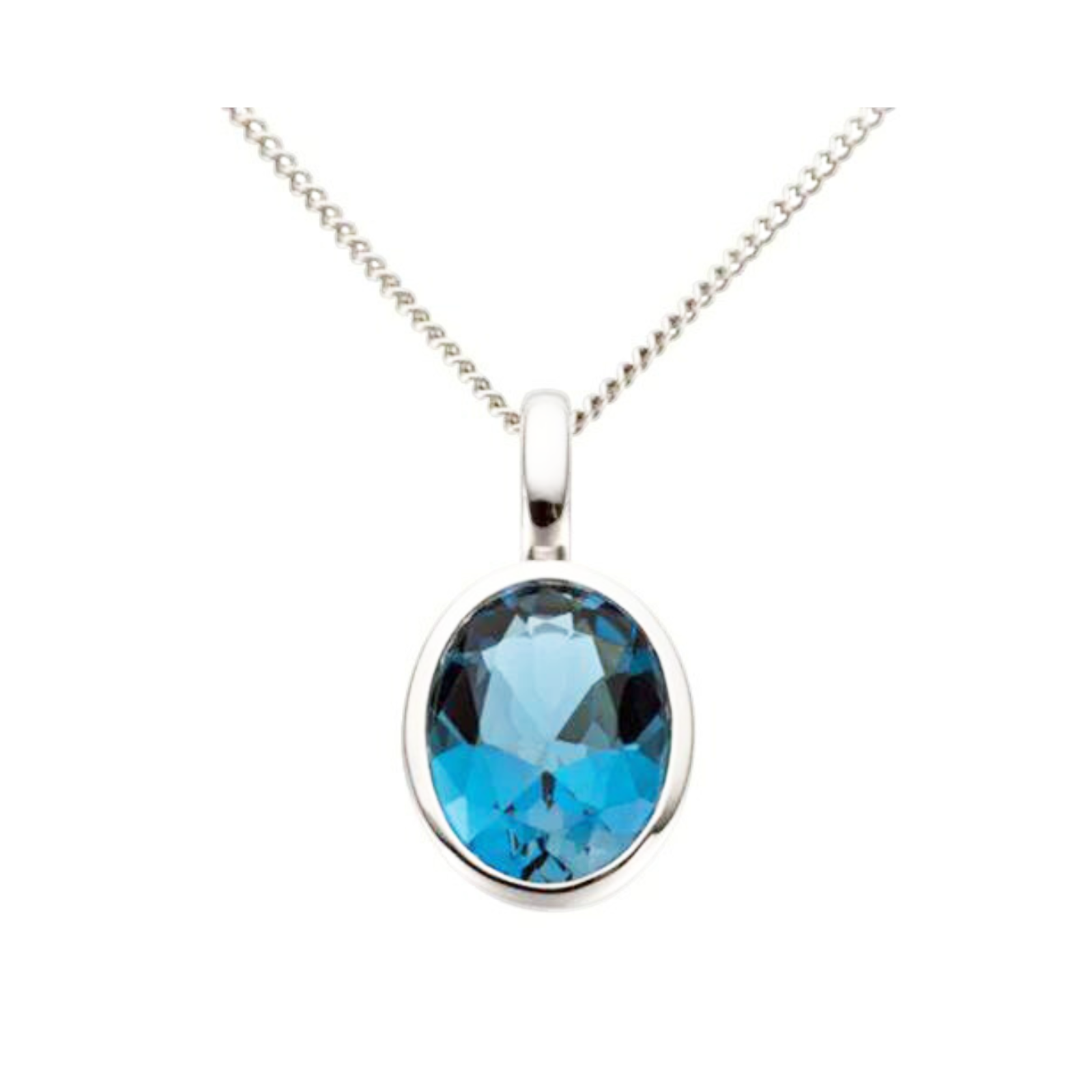 9ct White Gold Oval Bezel Set London Blue Topaz Pendant