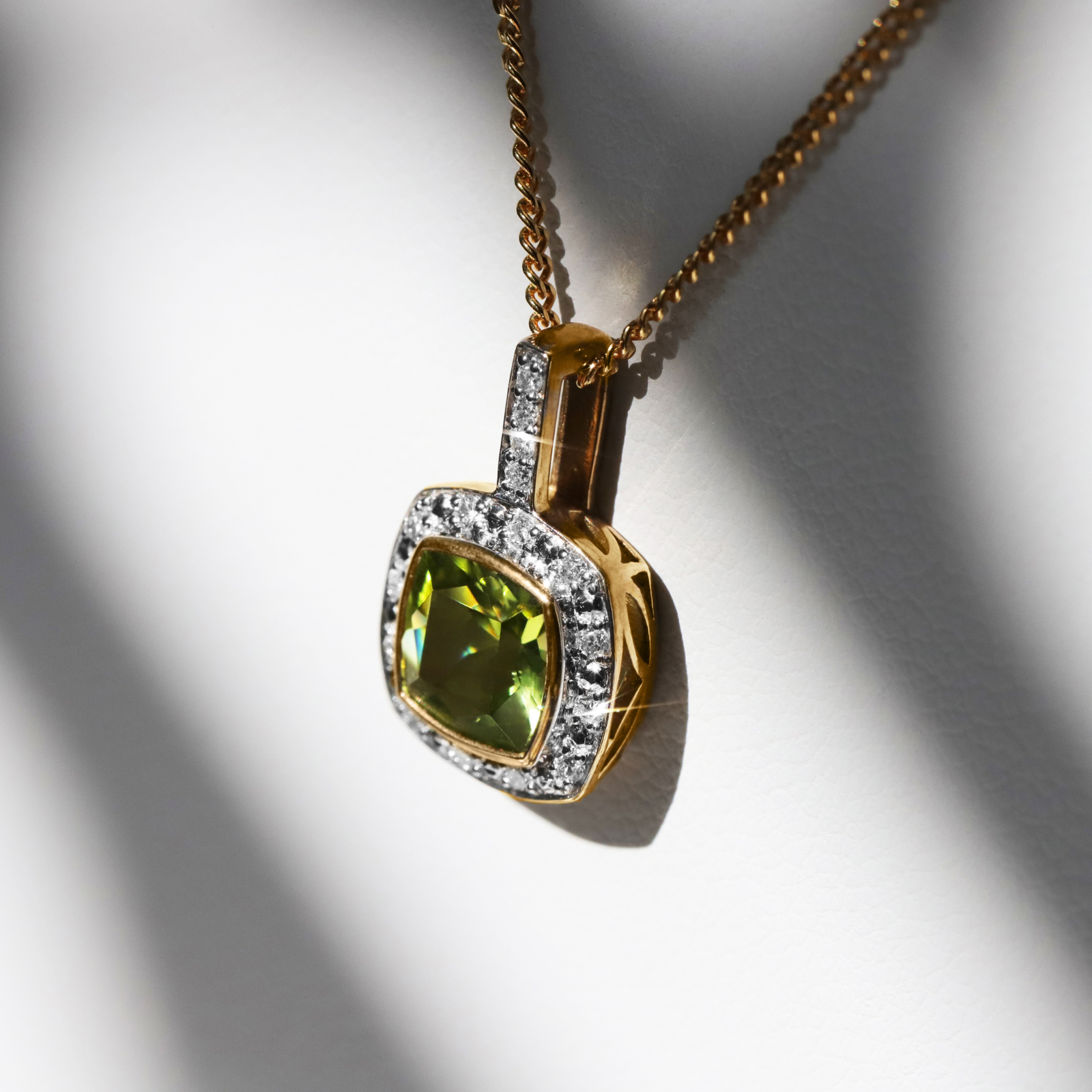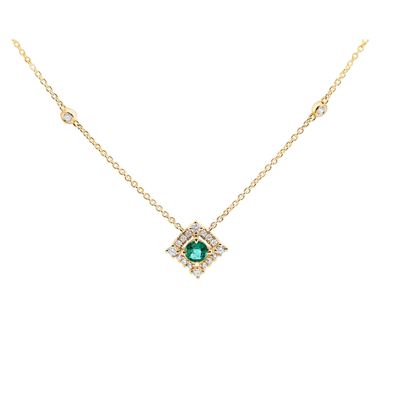 9ct Yellow Gold Emerald Pendant With Diamond Halo