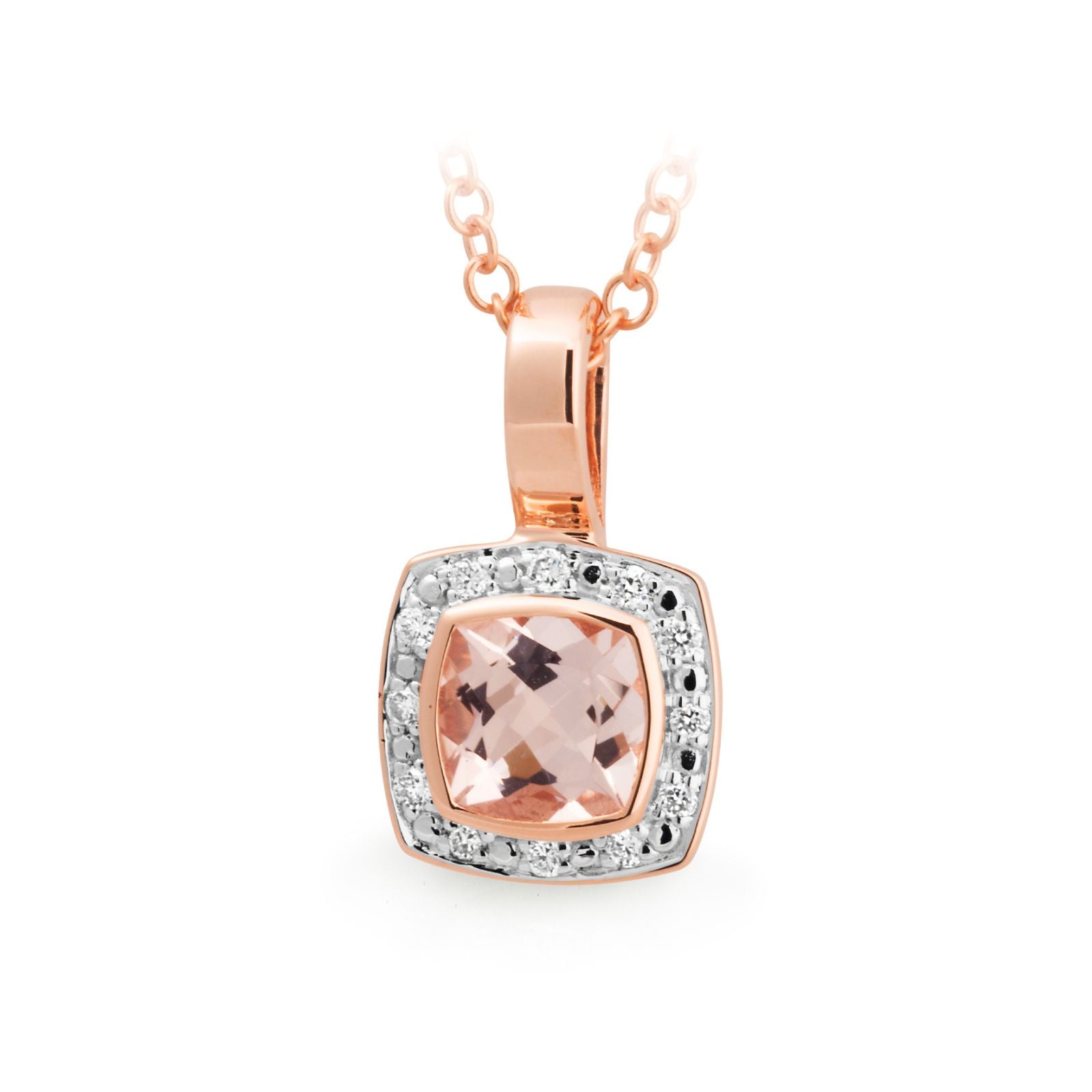 9ct Rose Gold Rose Quartz And Diamond Pendant