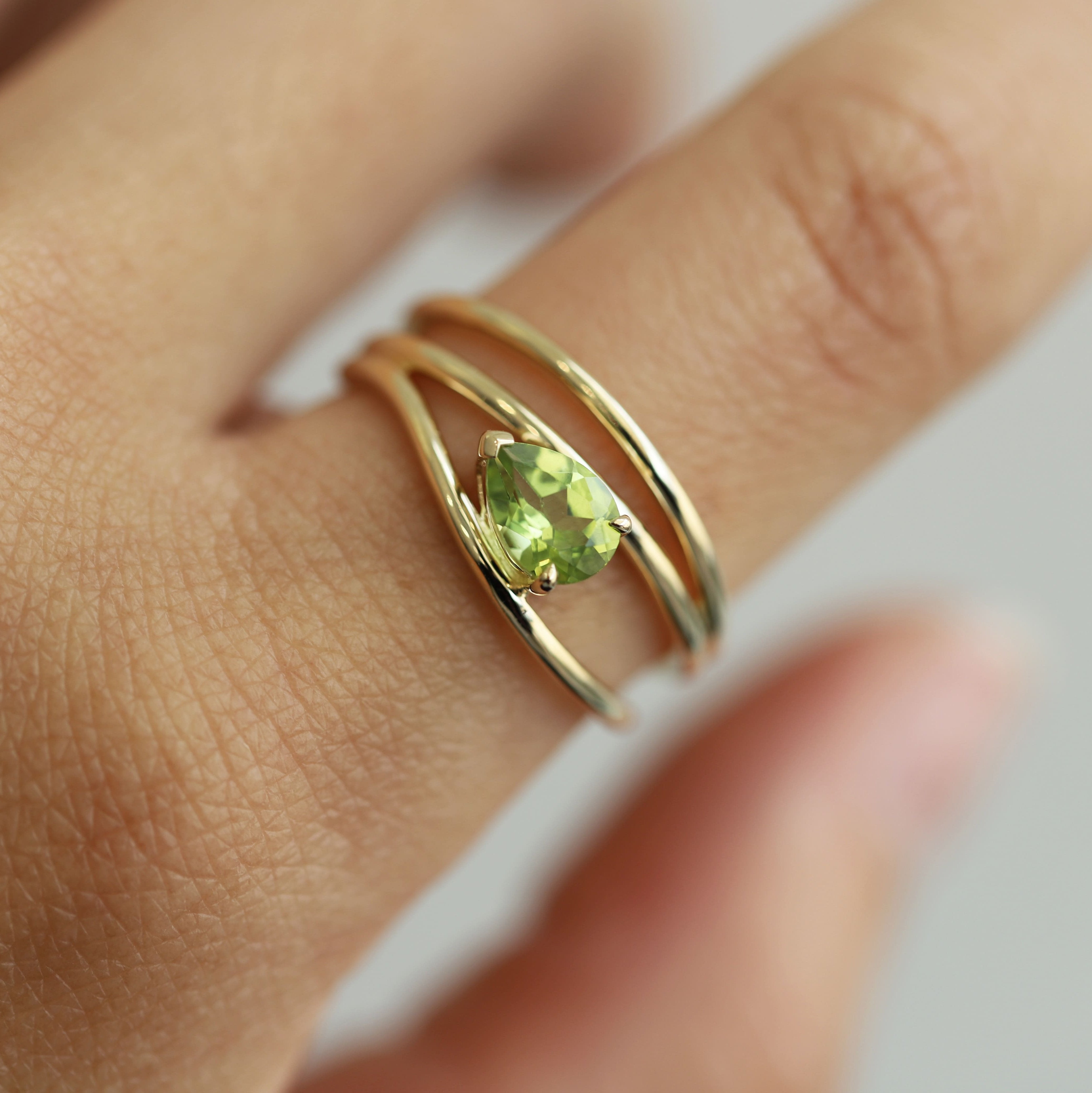 9ct Yellow Gold Three Band Peridot Dress Ring