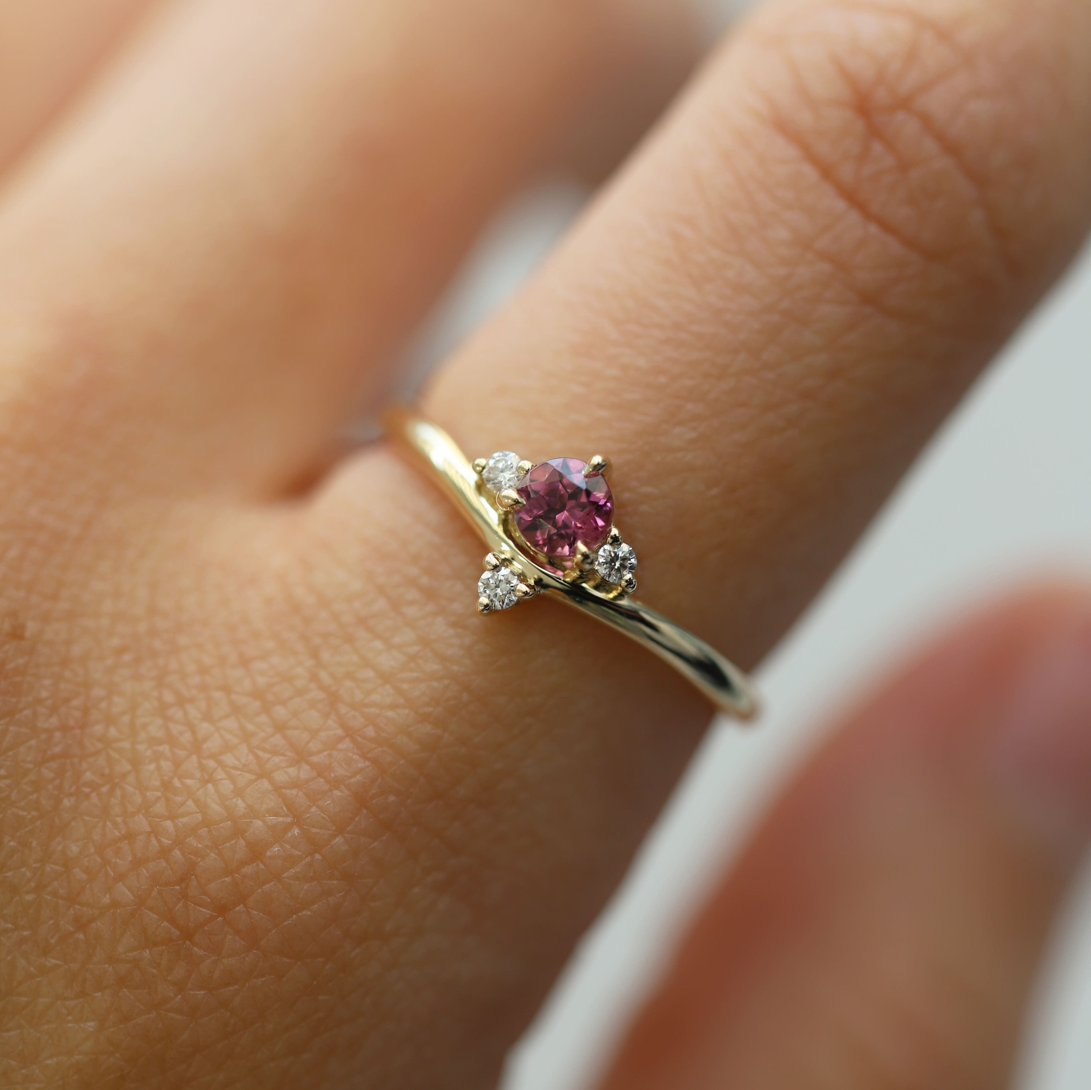 9ct Yellow Gold Rhodolite Garnet & Lab Grown Diamond Ring