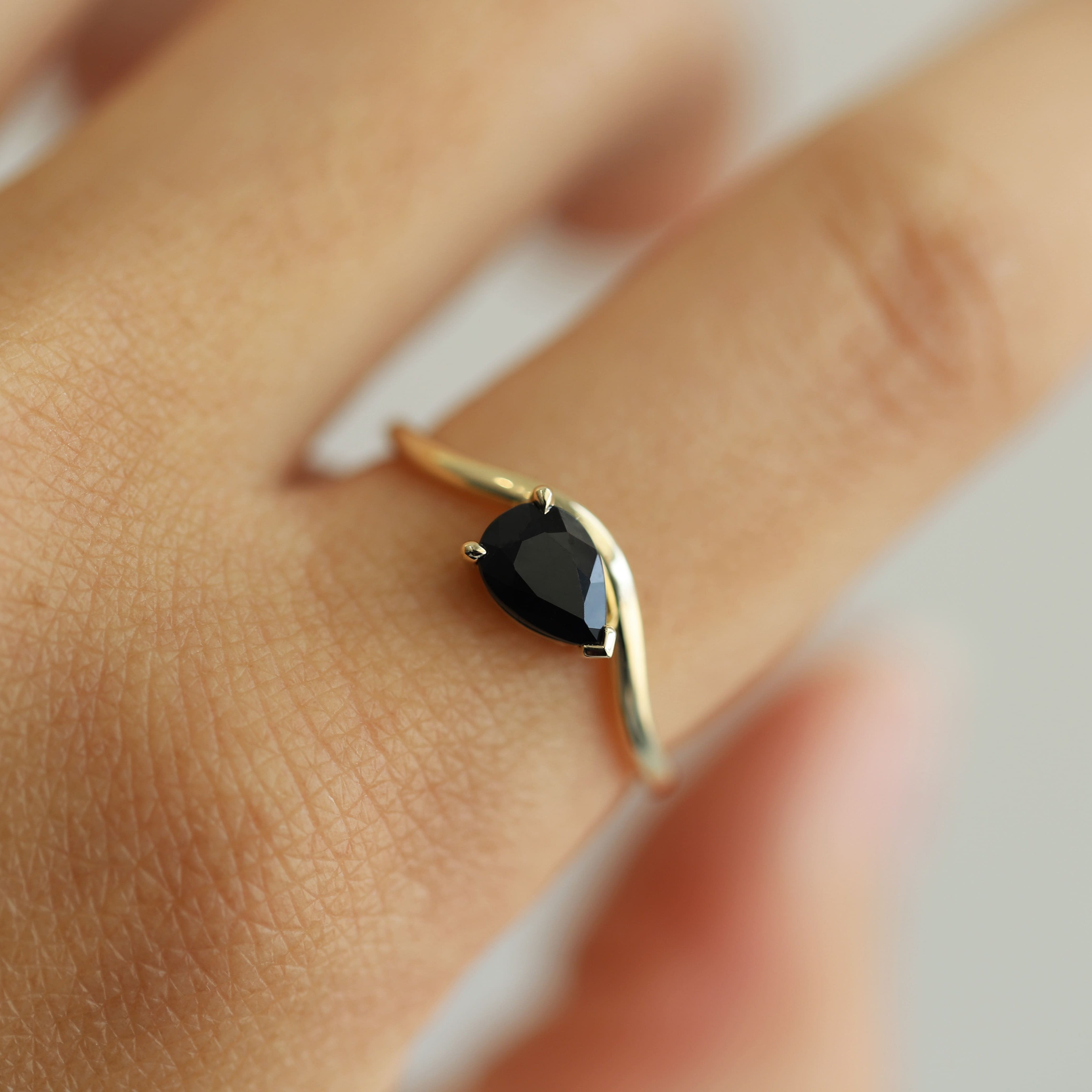 9ct Yellow Gold Pear Shape London Blue Topaz Ring