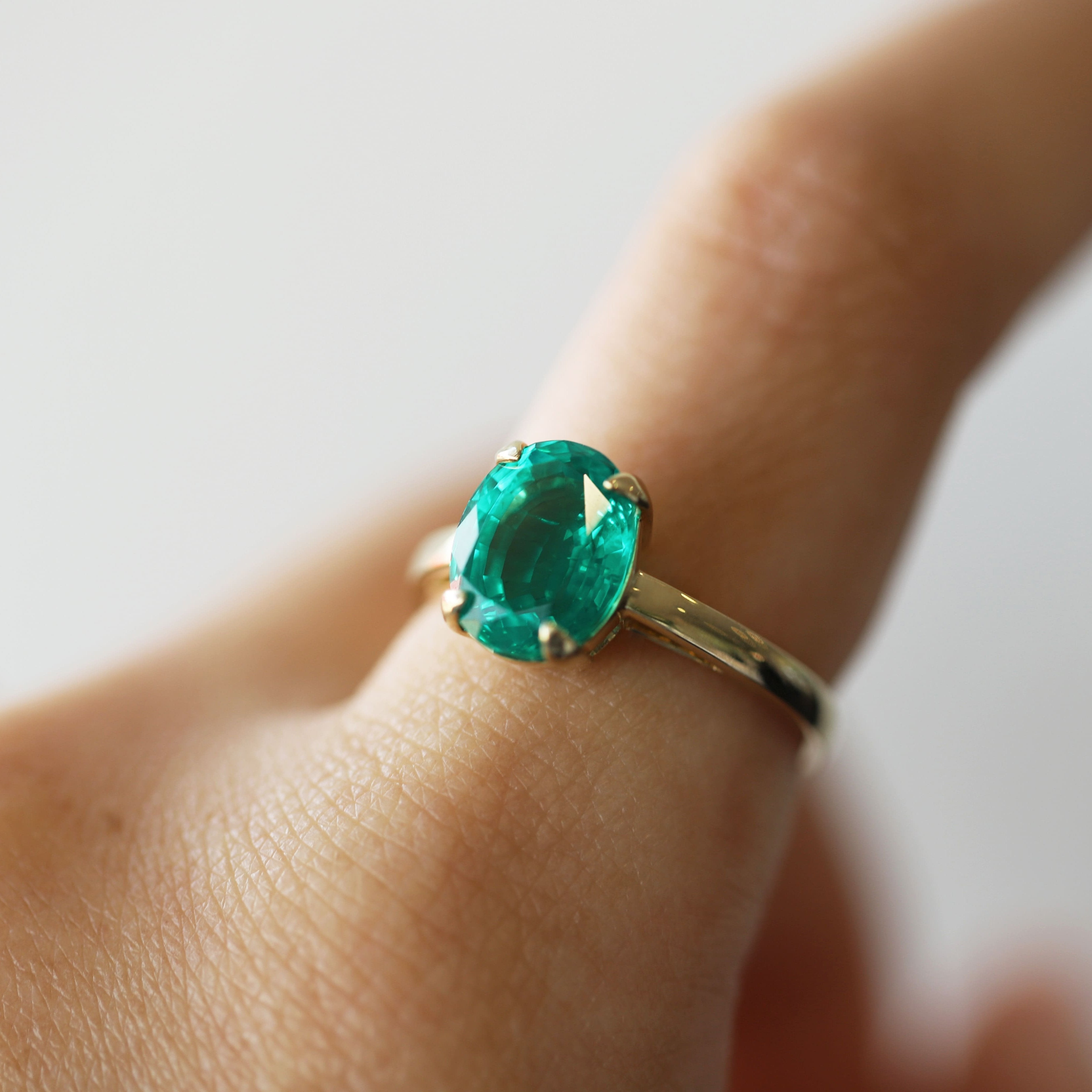 9ct Yellow Gold Mint Tourmaline & Lab Grown Diamond Ring