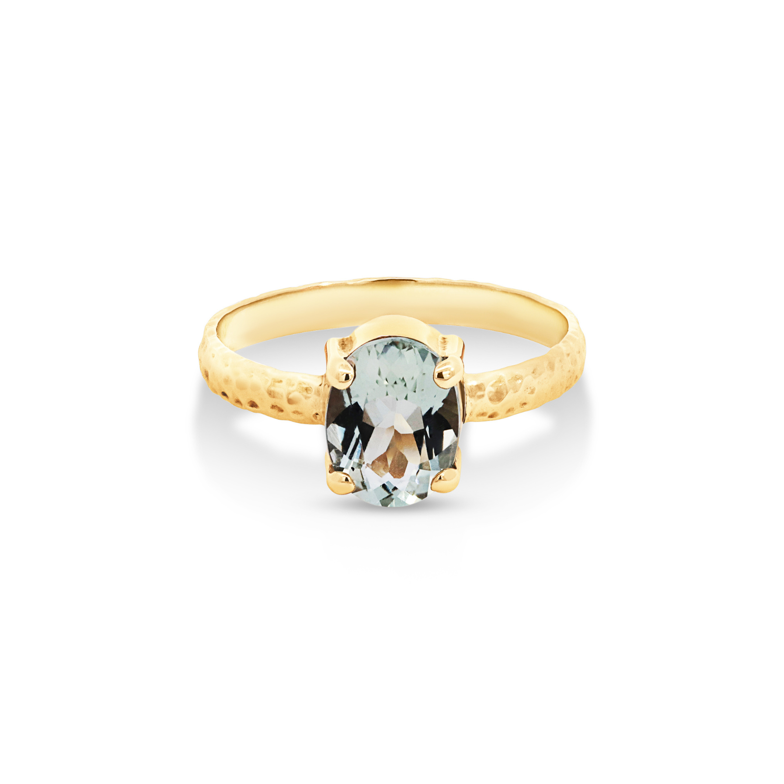 9ct Yellow Gold Aquamarine Ring With Beaten Band