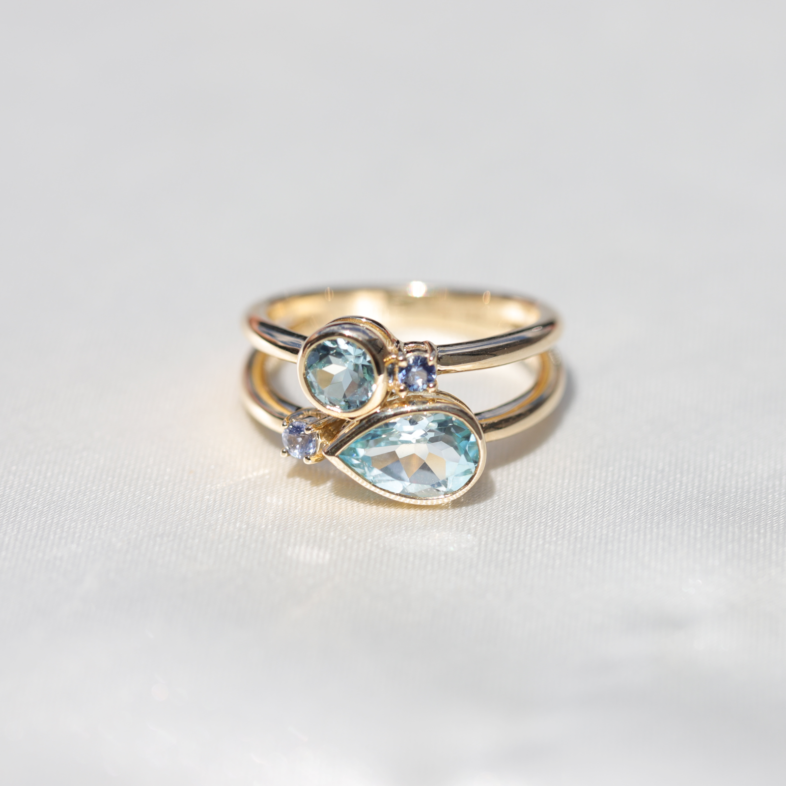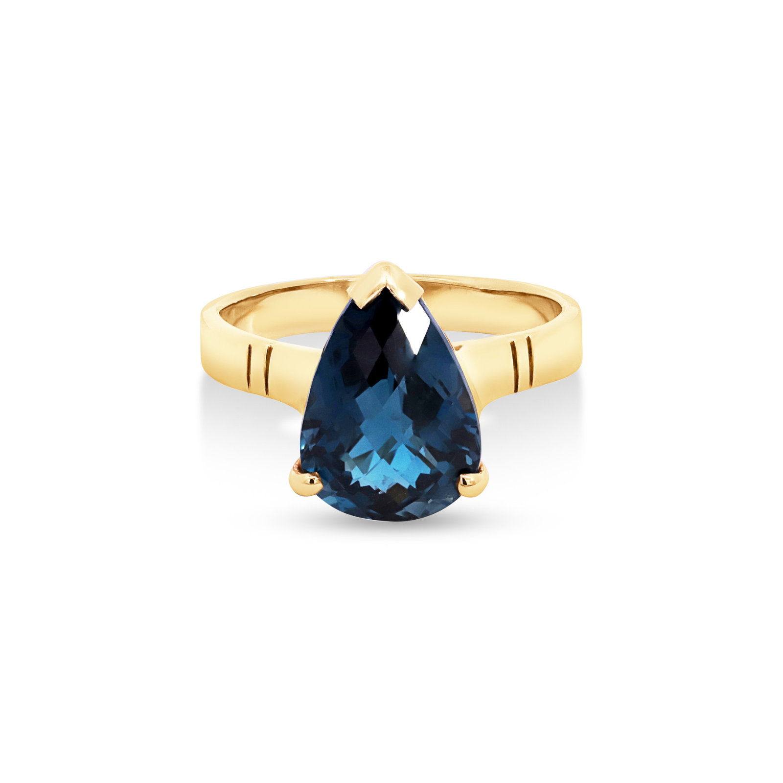 9ct Yellow Gold Teardrop London Blue Topaz Ring