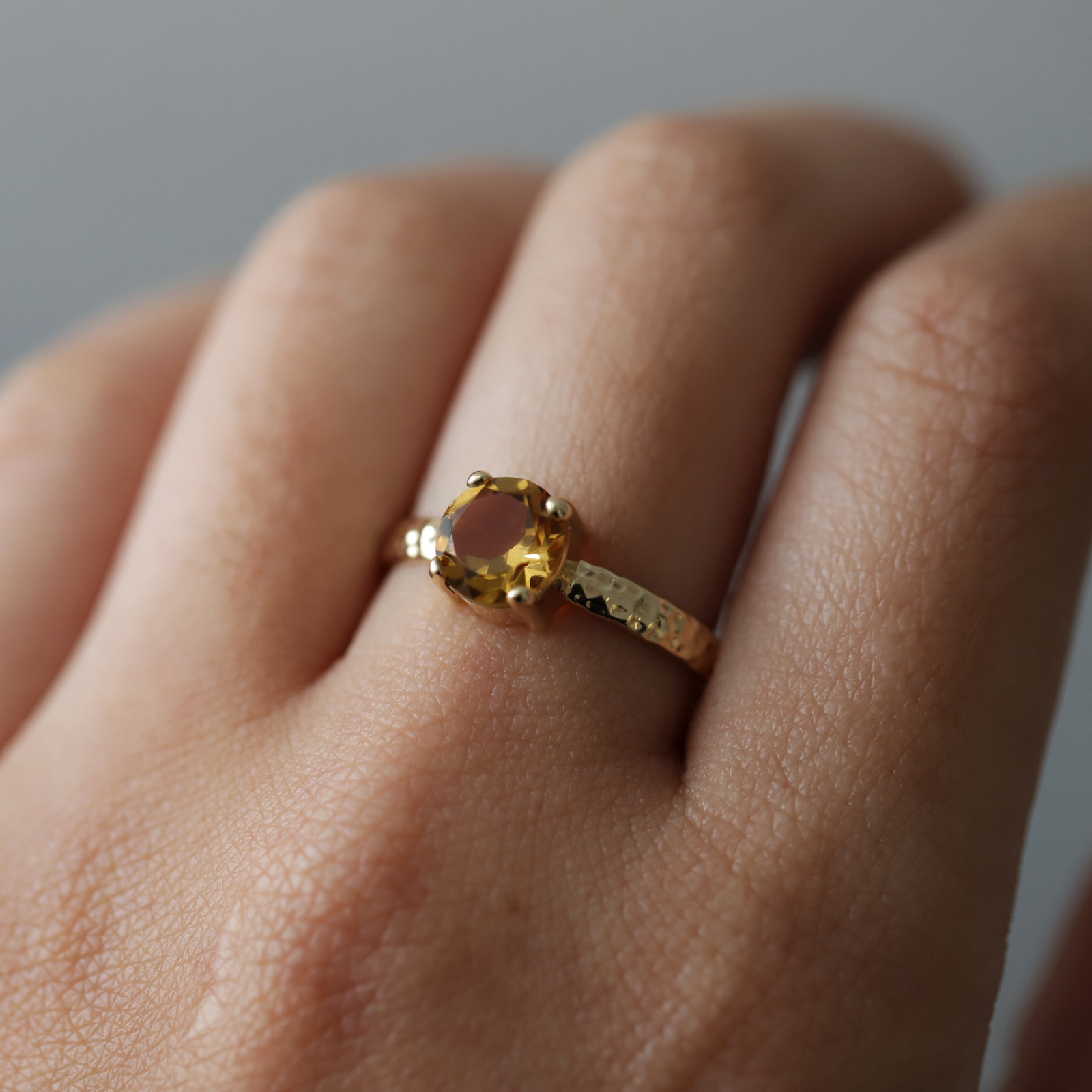9ct Yellow Gold Citrine Ring With Beaten Band