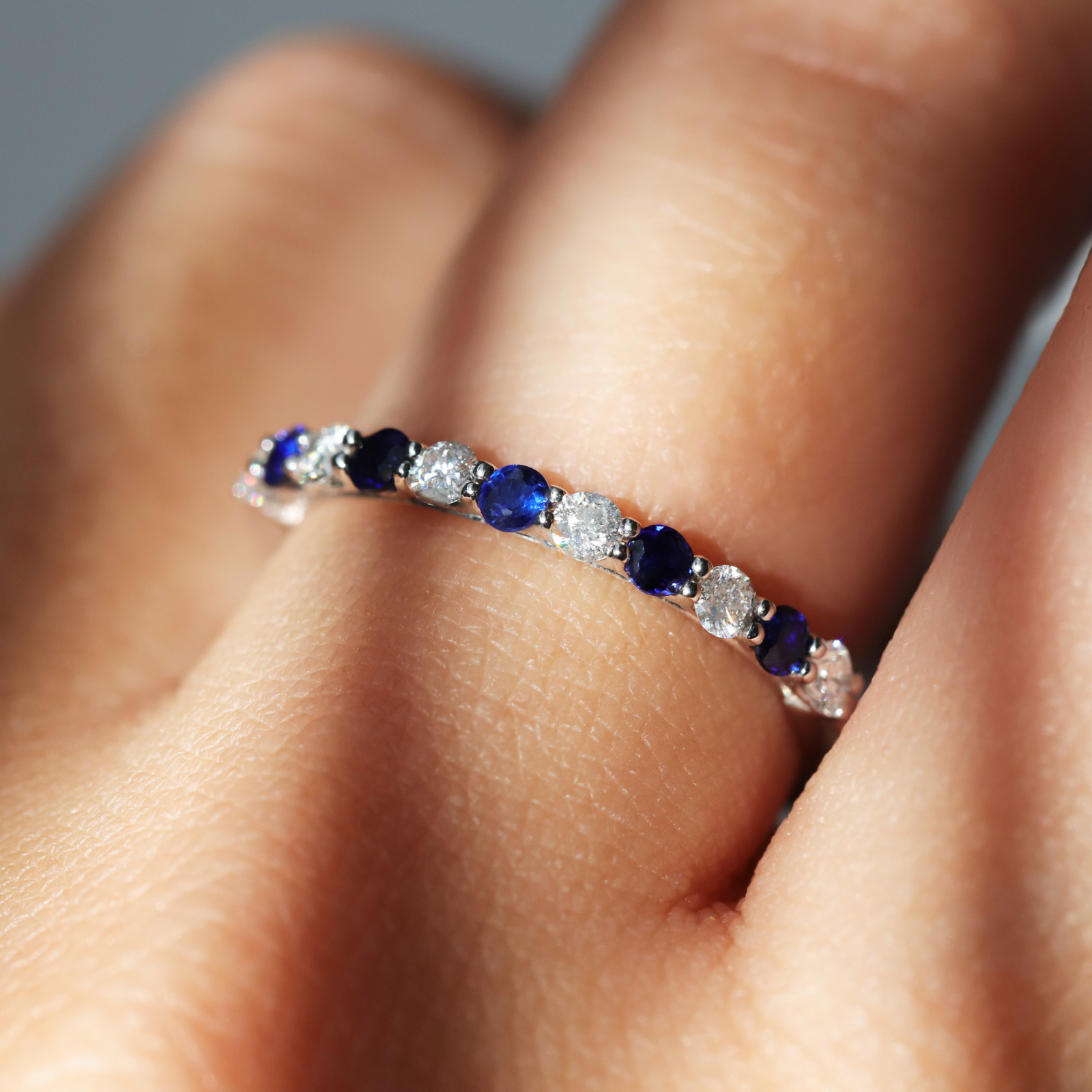 9ct White Gold Sapphire & Diamond Split Band Ring