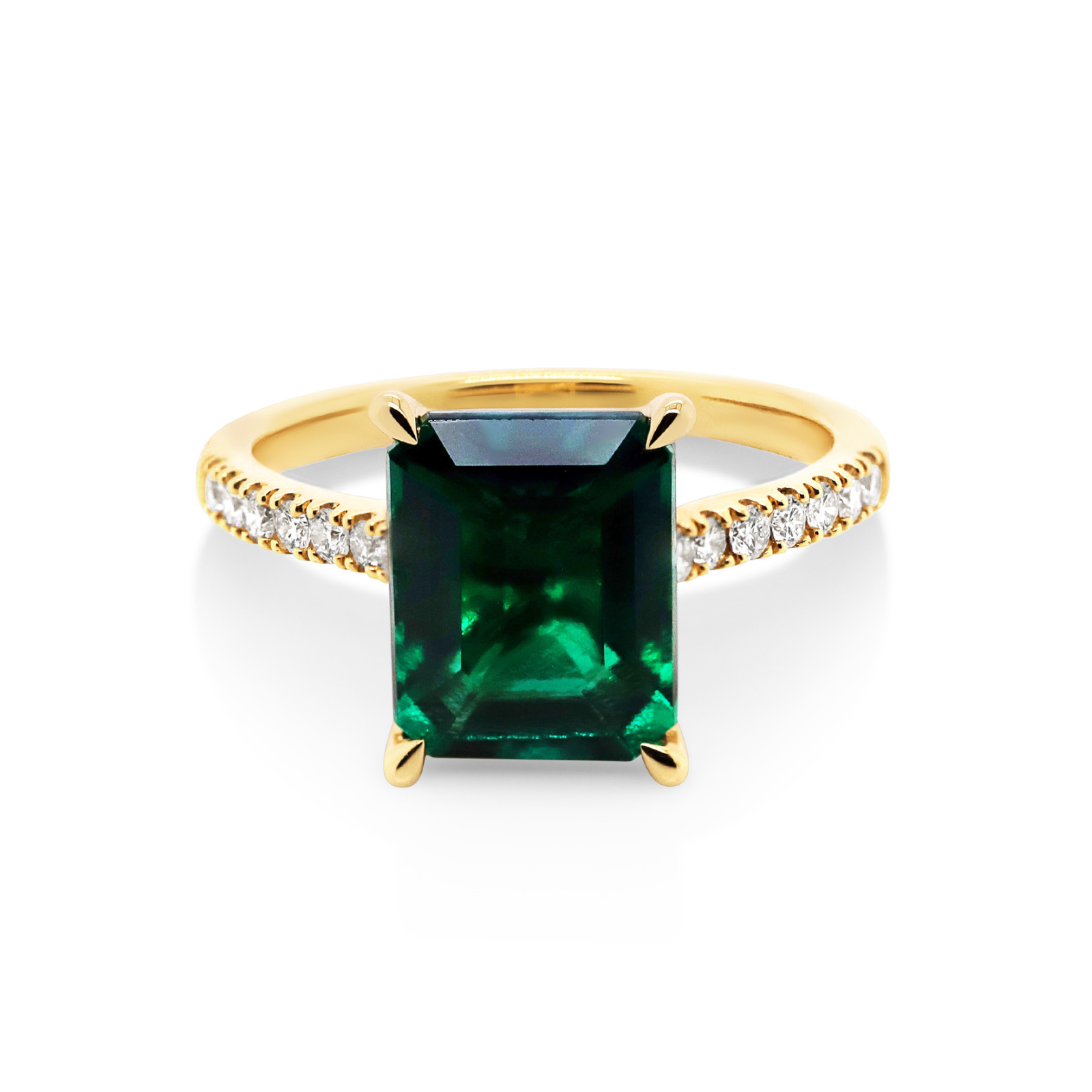 18ct Yellow Gold Emerald & Diamond Antique Style Ring