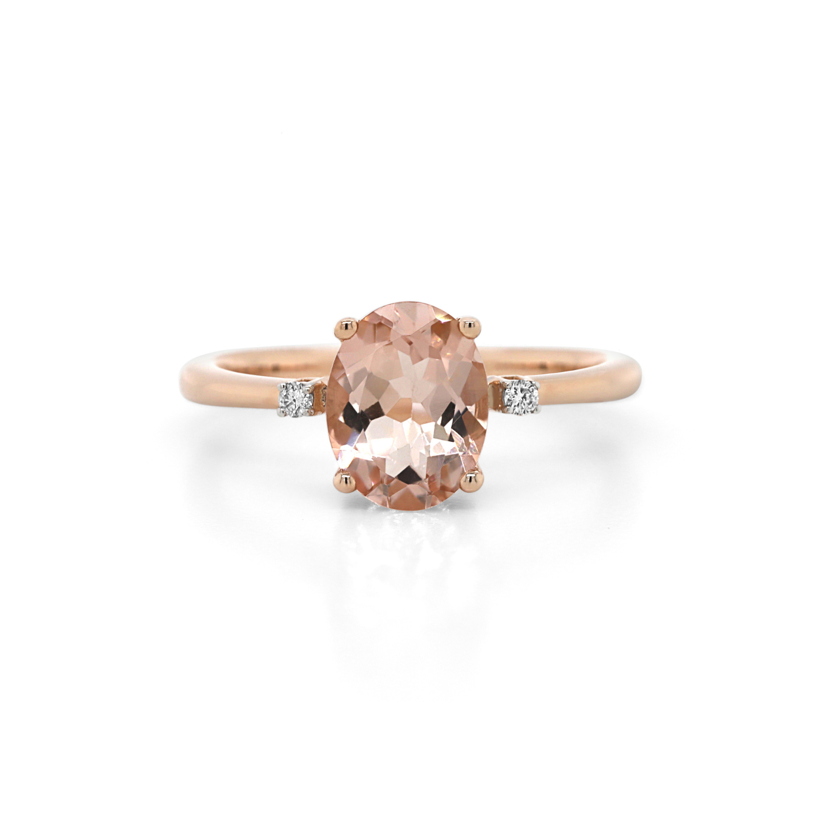 9ct Rose Gold Oval Morganite & Diamond Ring