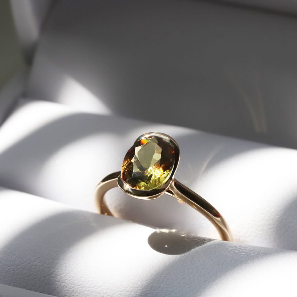 14ct Yellow Gold Oval bezel Set Andalusite Ring
