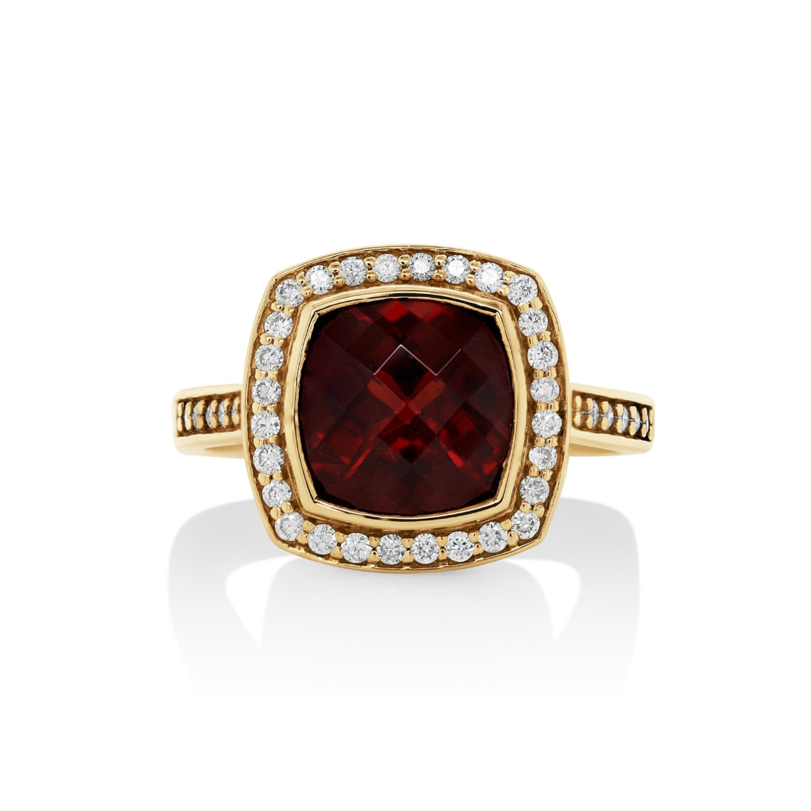 9ct Yellow Gold Cushion Cut Garnet And Diamond Ring