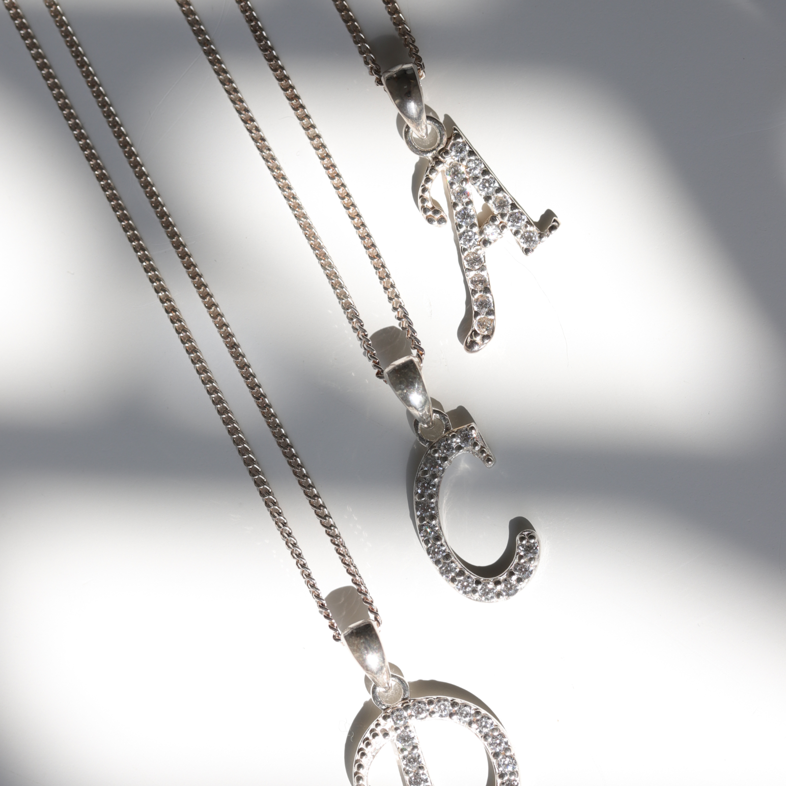 Sterling Silver Cubic Zirconia Letter C Pendant On Chain