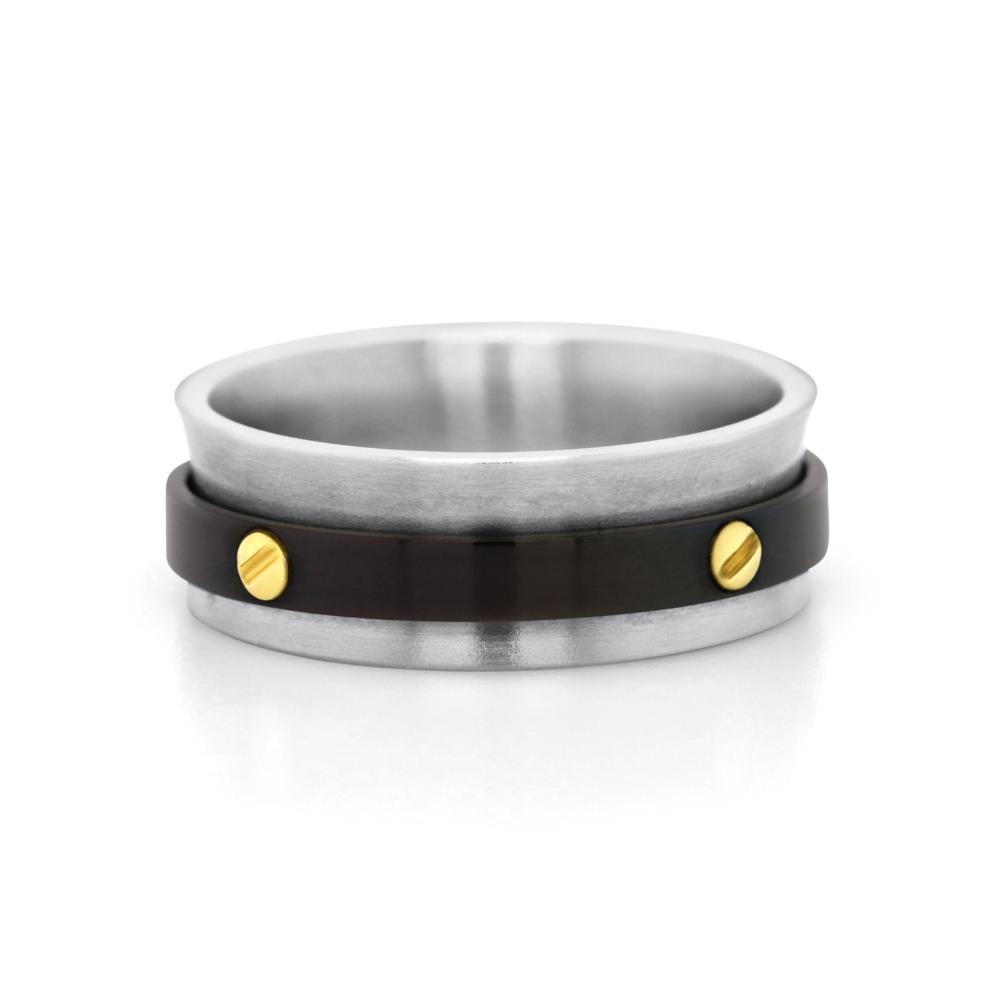 Men's Titanium, Sterling Silver & Steel Patterned Ring
