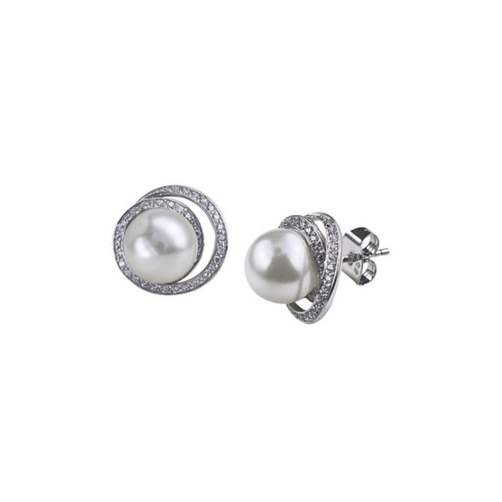 Sterling Silver Pearl And Cubic Zirconia Swirl Studs