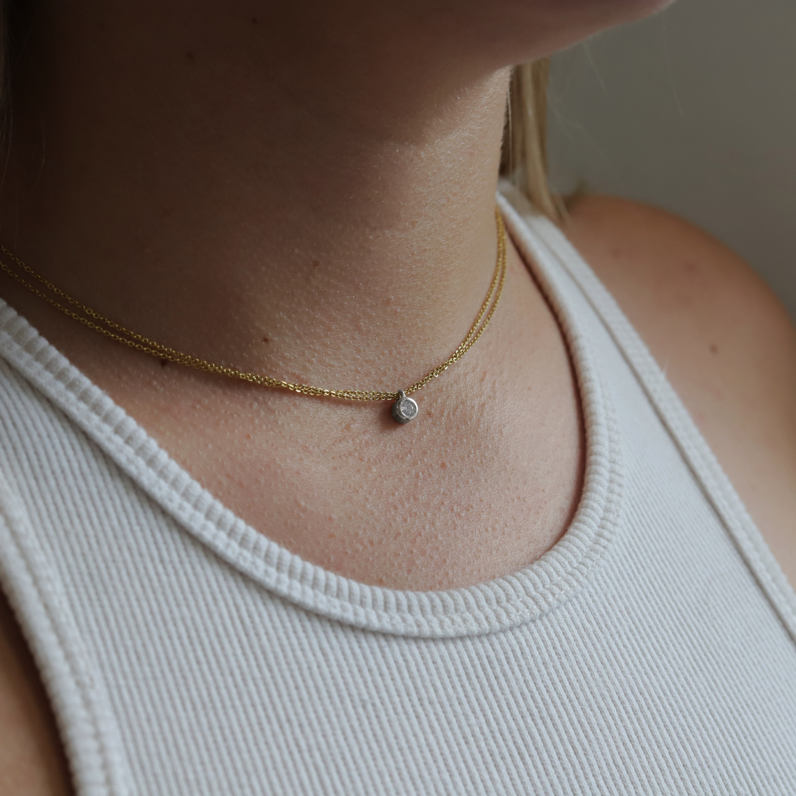 9ct White & Yellow Gold Bezel Set Diamond Pendant