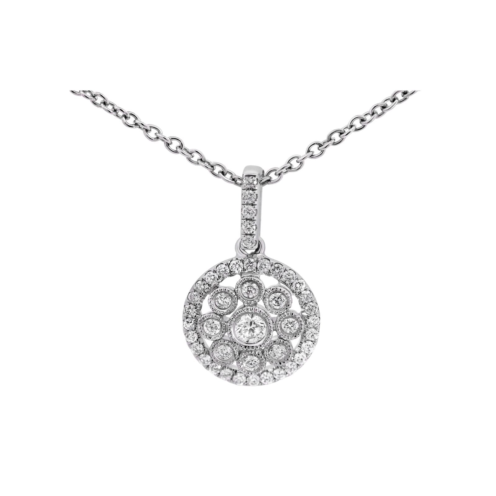 9ct Two Tone Oval Swirl Diamond Set Pendant