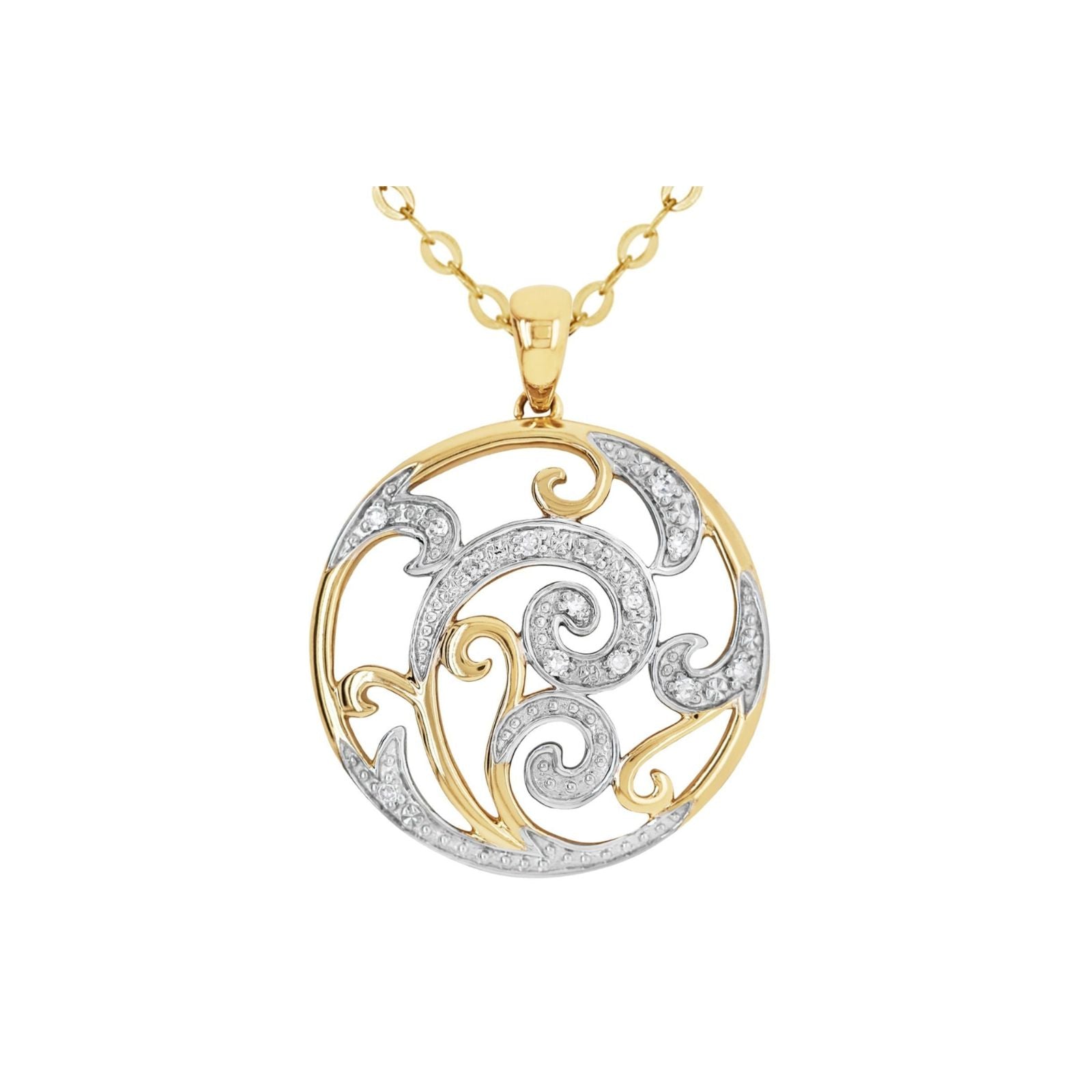 9ct Yellow Gold Circle Pendant Swirl Design Diamond Set