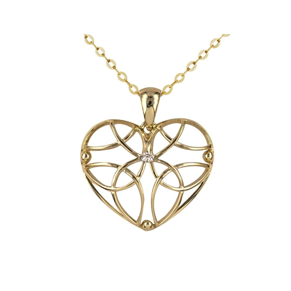 9ct Yellow Gold Diamond Set Filigree Heart Pendant