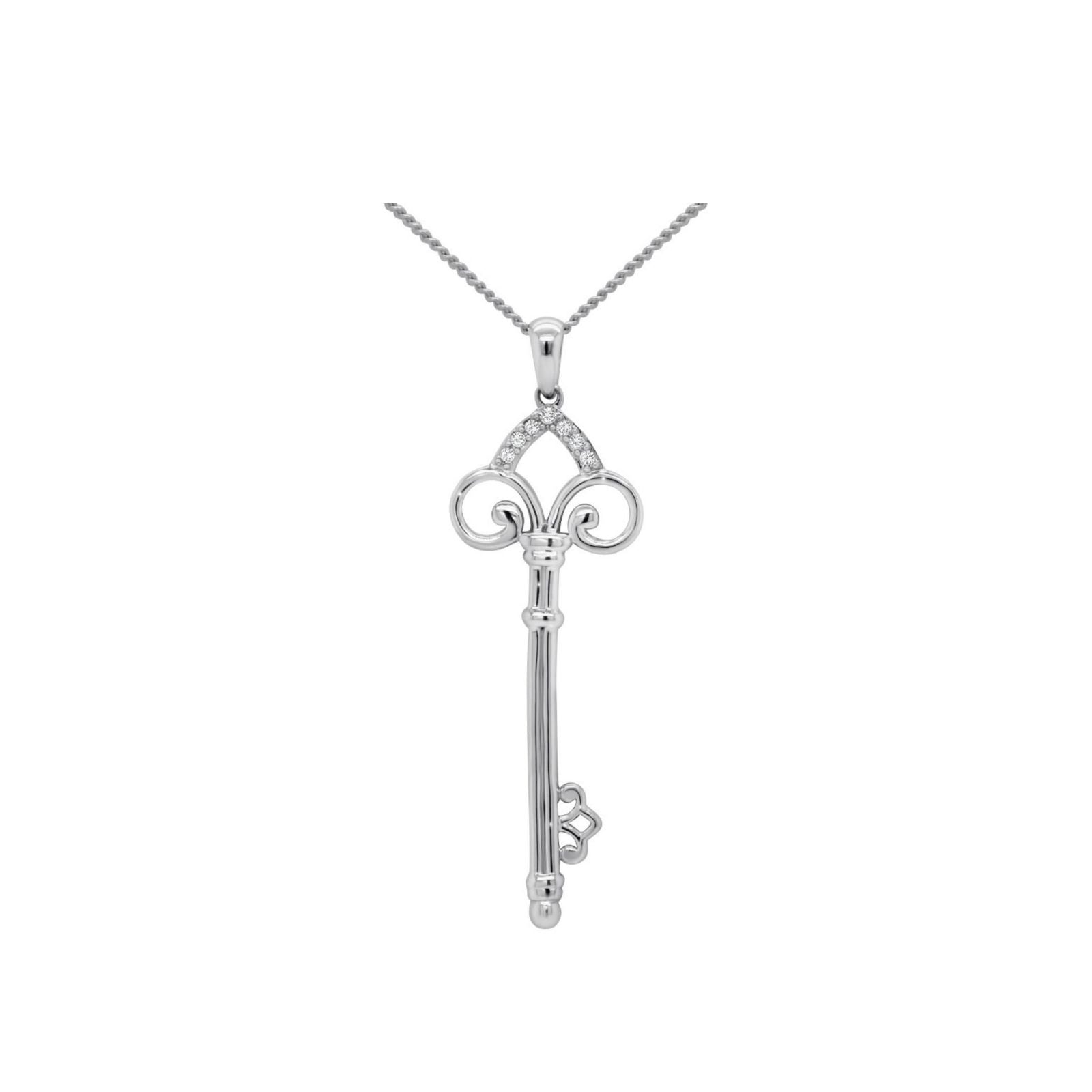9ct White Gold Scalloped Teardrop Diamond Pendant On Fine Chain
