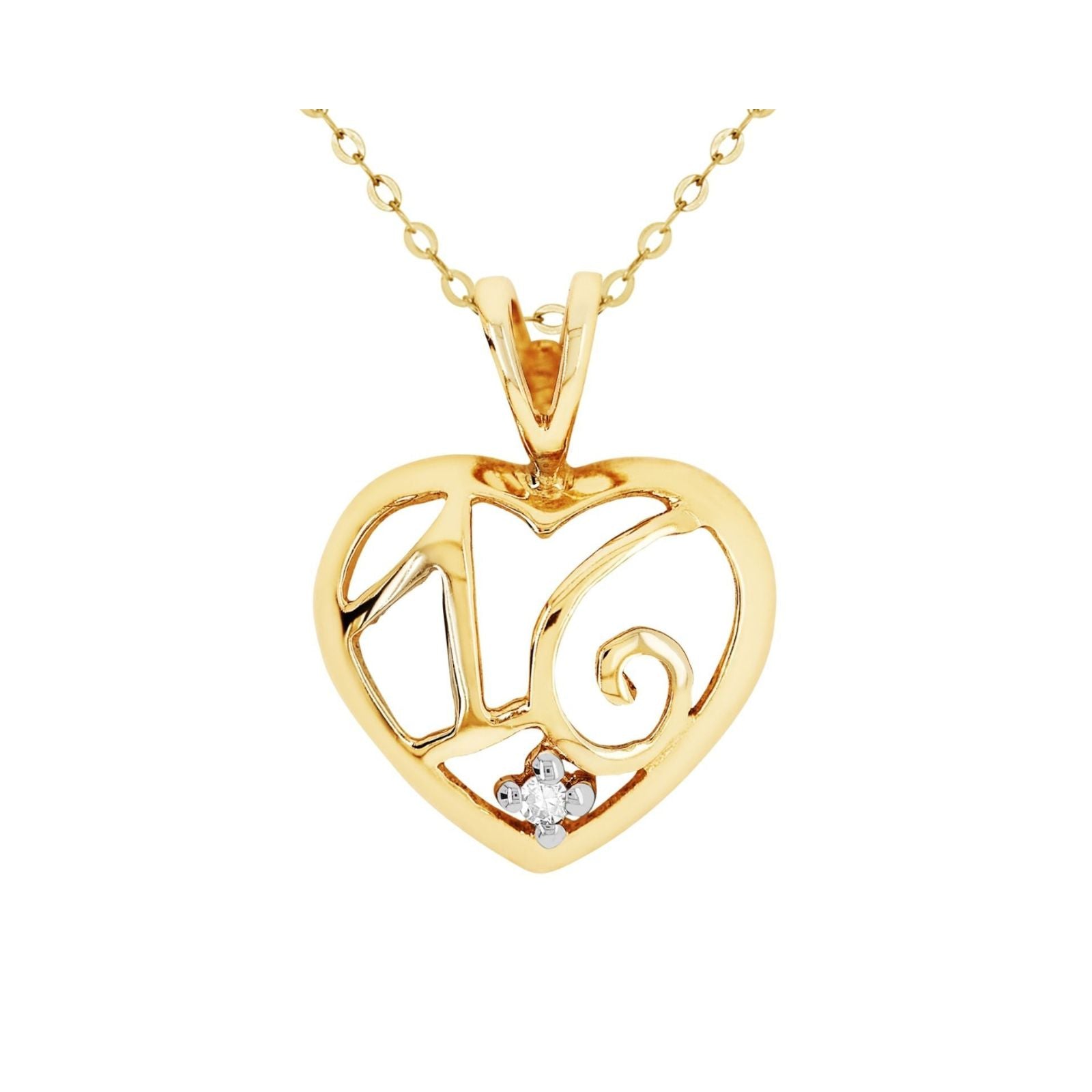 9ct Yellow Gold Diamond Set '18' Heart Pendant