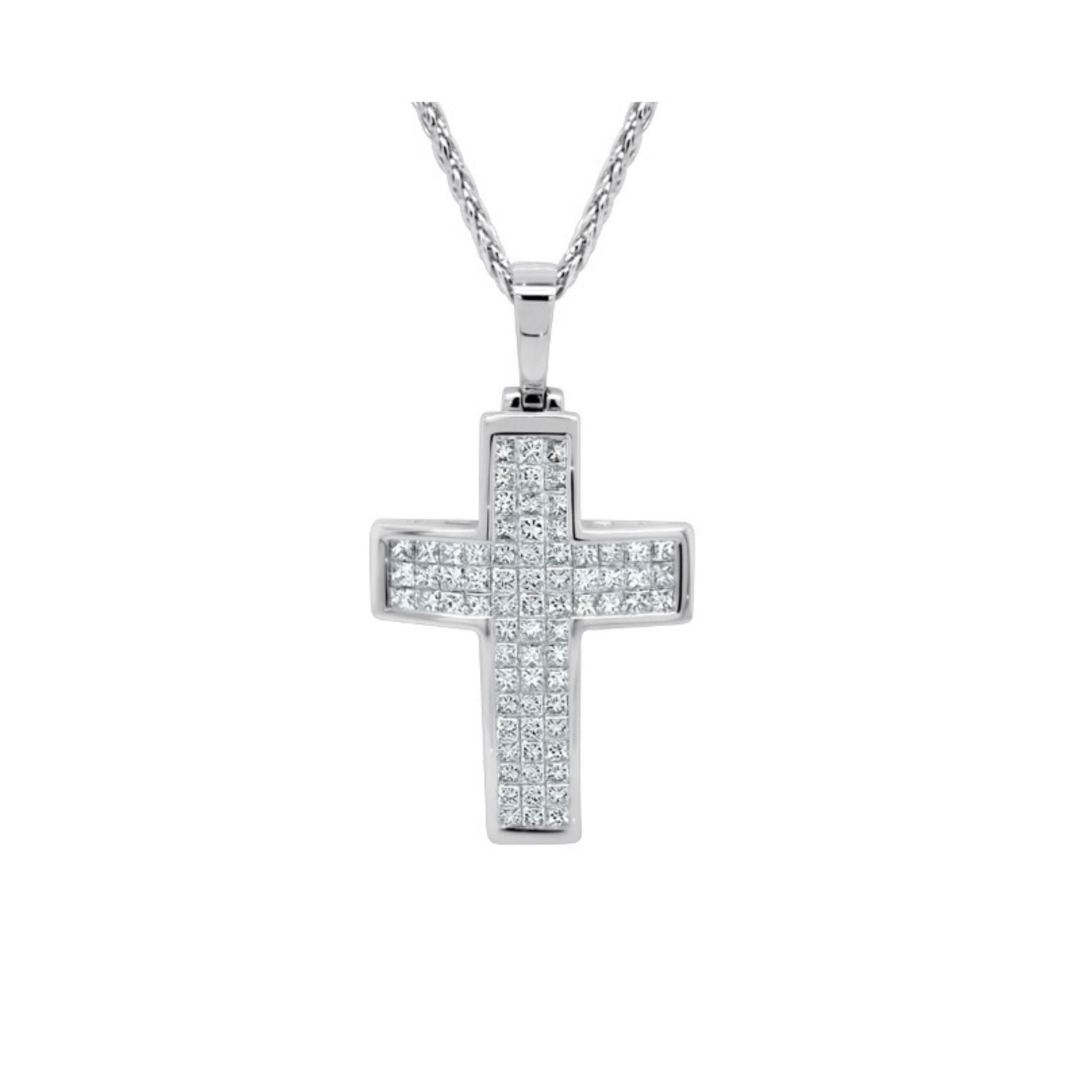 18ct White Gold Princess Cut Diamond Cross Pendant