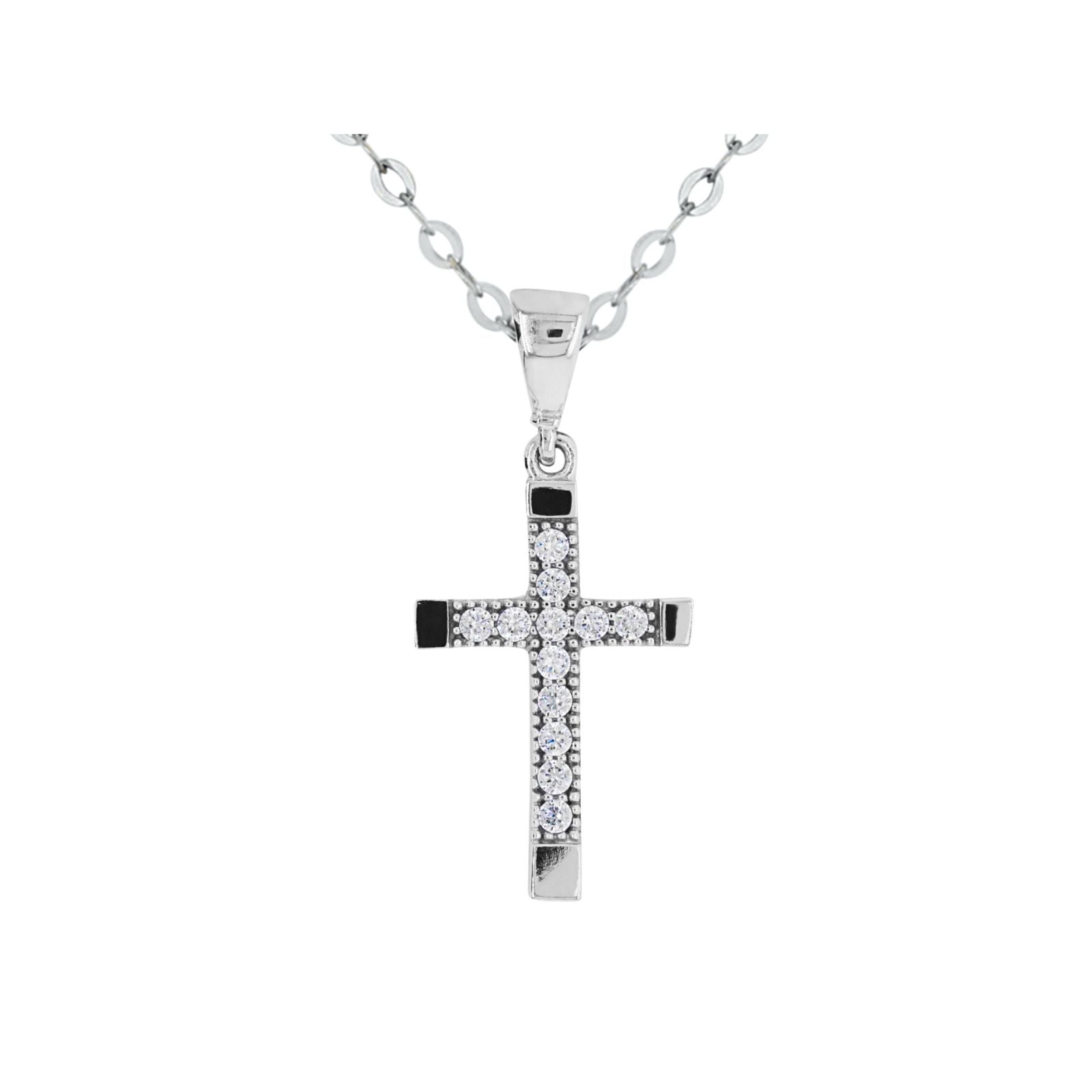 Sterling Silver Plain Polished Cross With Cubic Zirconia