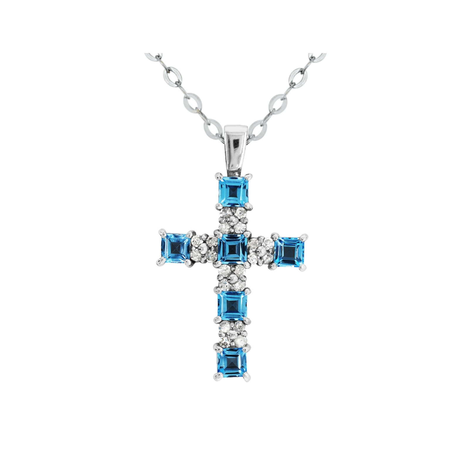 9ct White Gold Blue Topaz & Diamond Cross Pendant