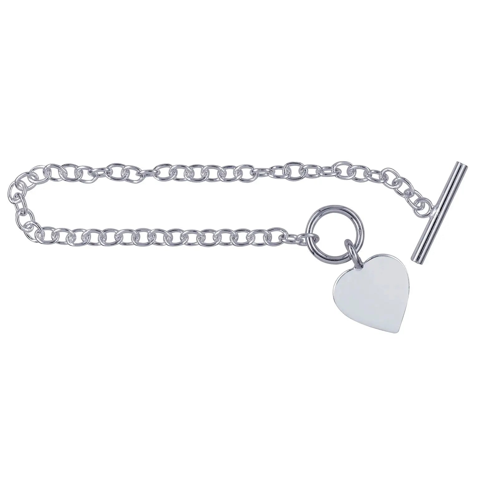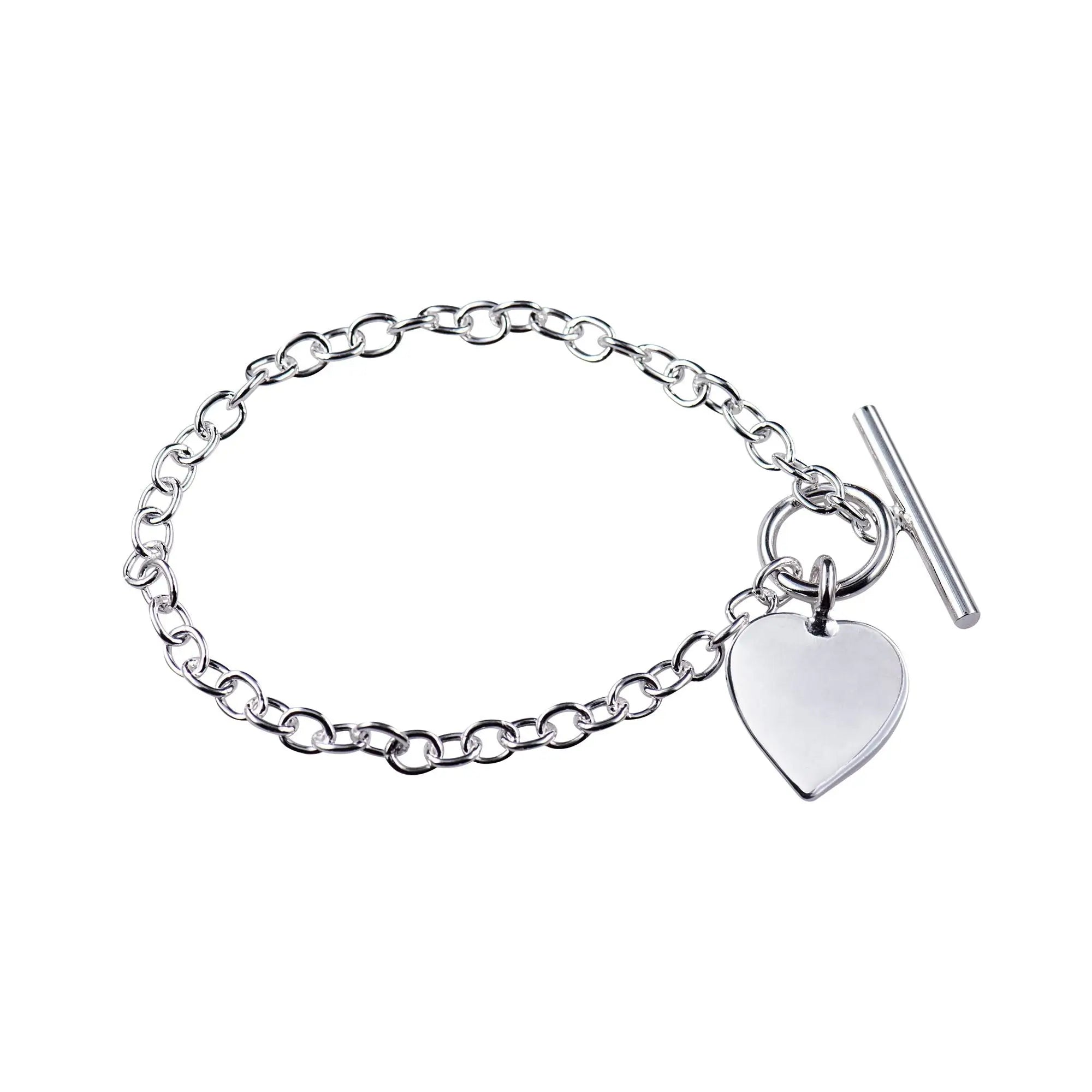 Sterling Silver Cable Bracelet With T-Bar And Heart