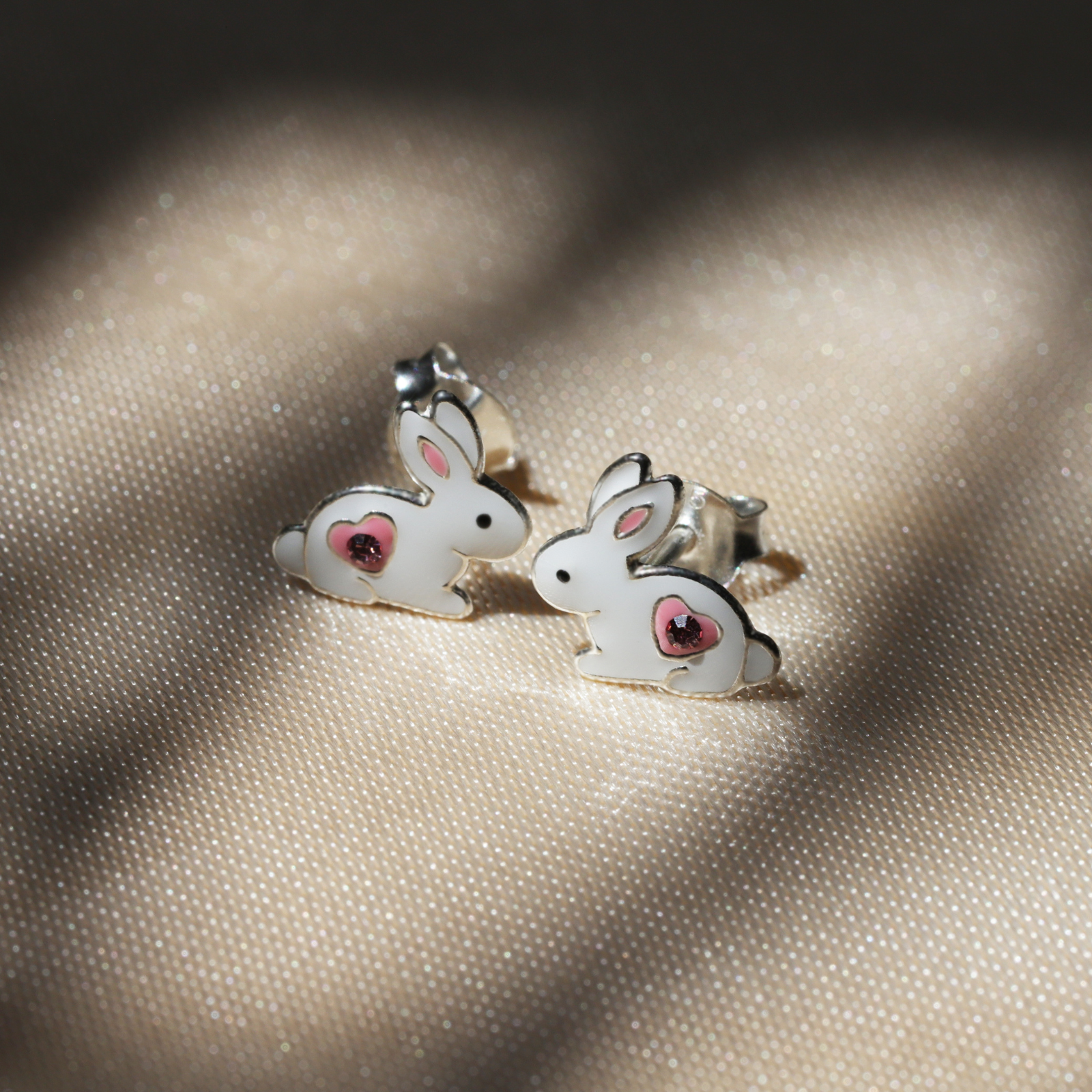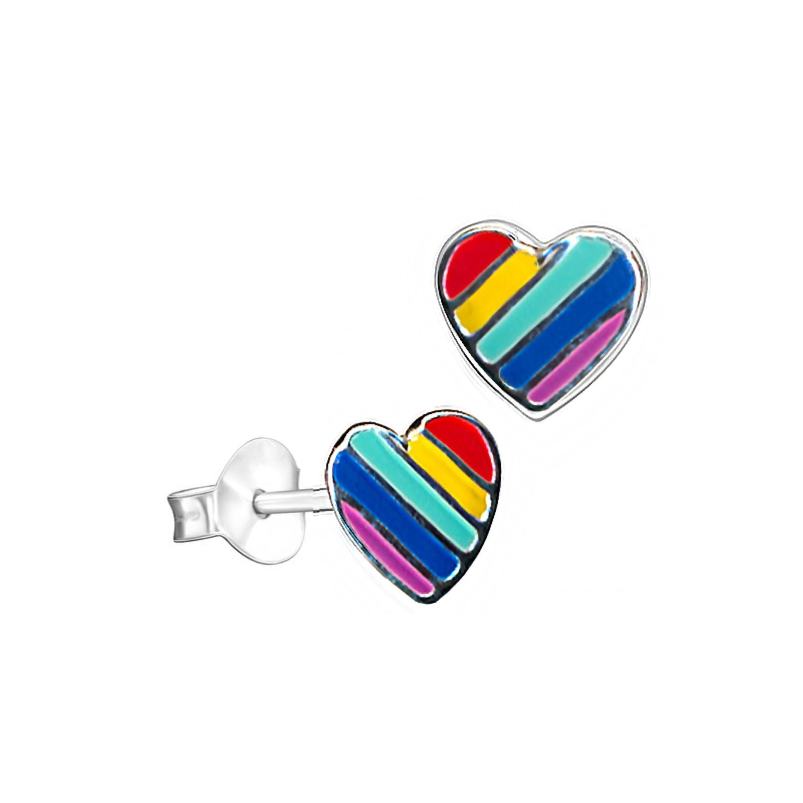 Sterling Silver Rainbow Enamel Heart Stud Earrings