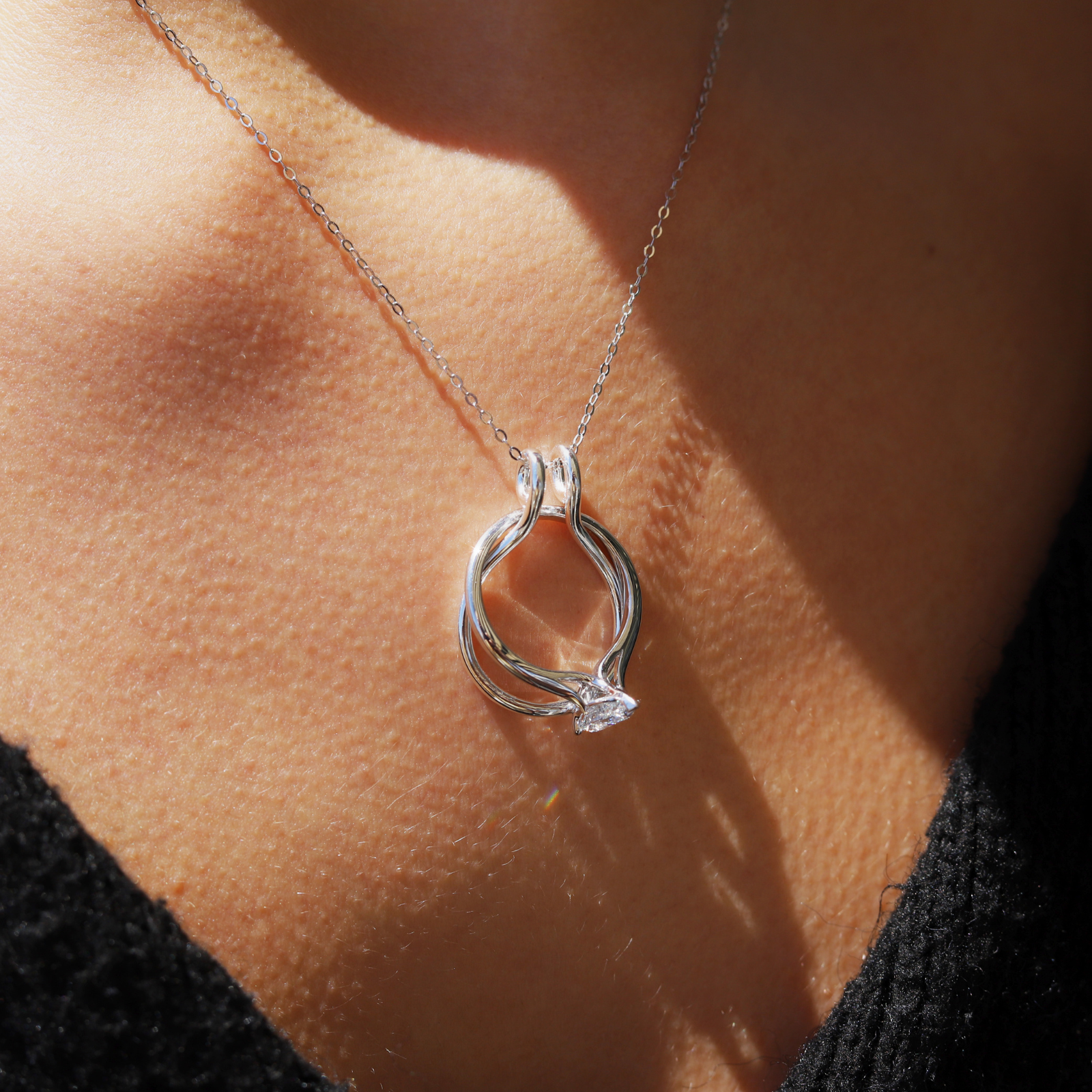 Sterling Silver Cubic Zirconia Set Floating Heart Pendant