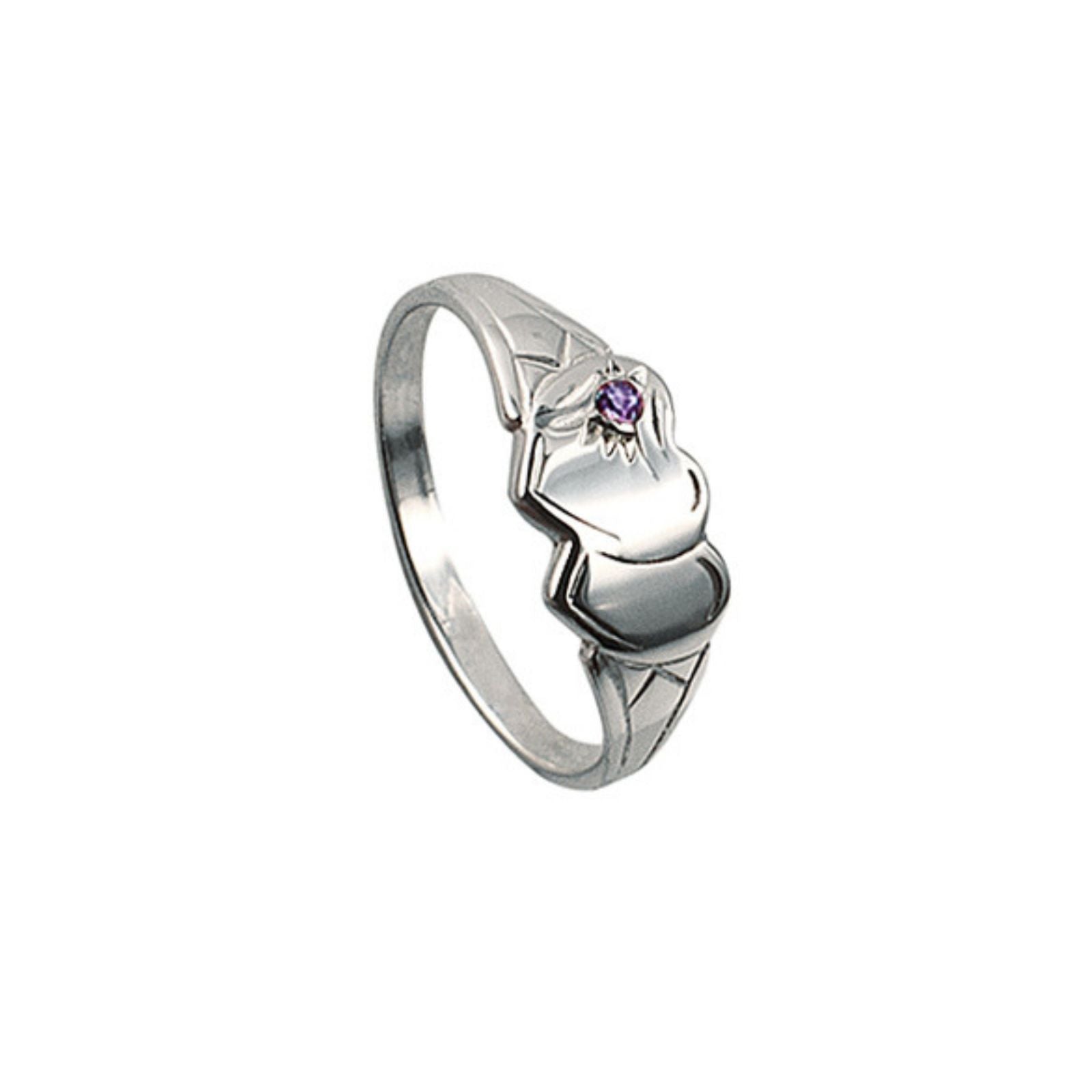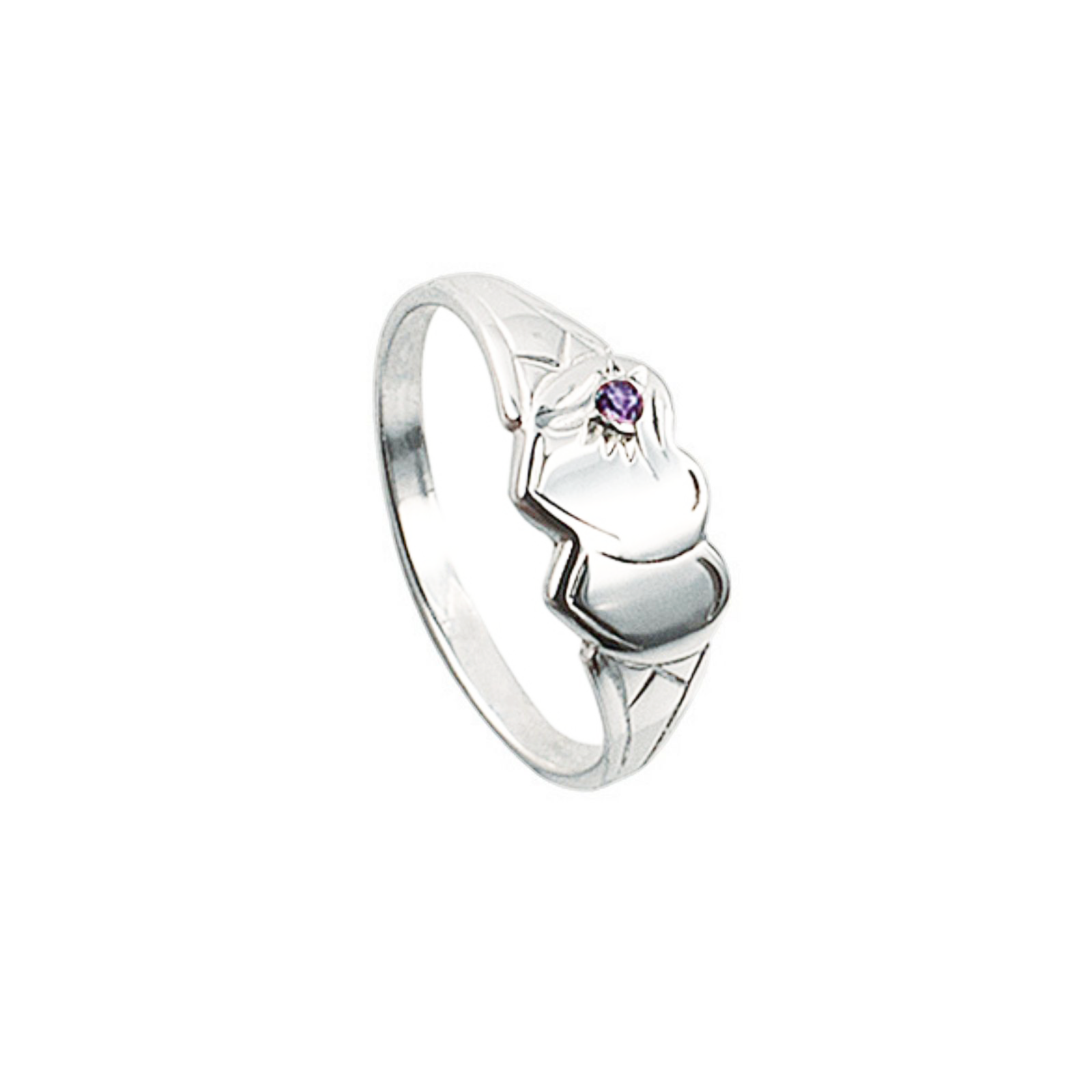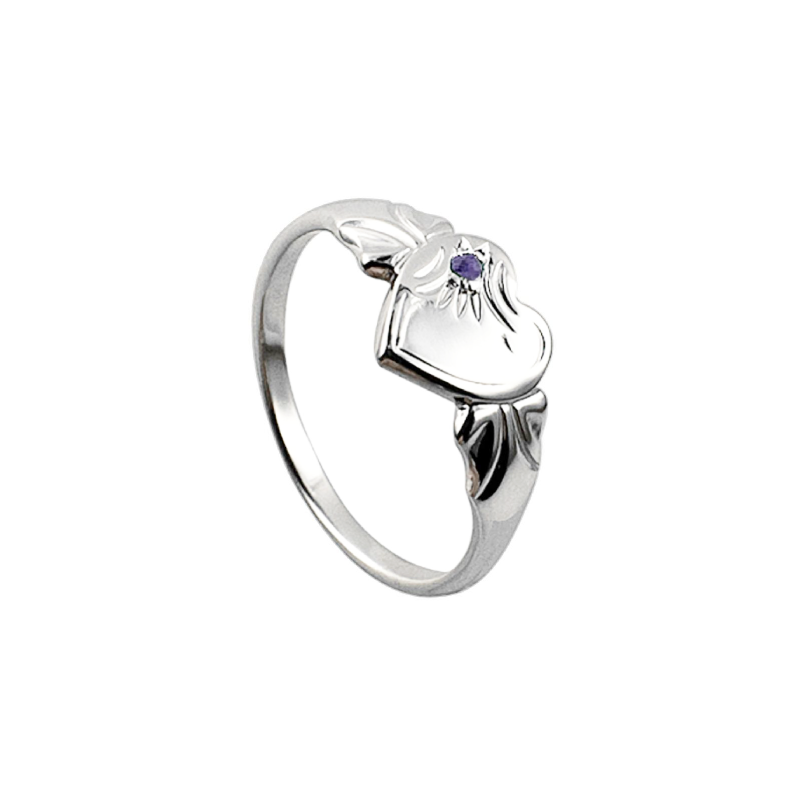 Sterling Silver Single Heart February Birthstone Signet Ring