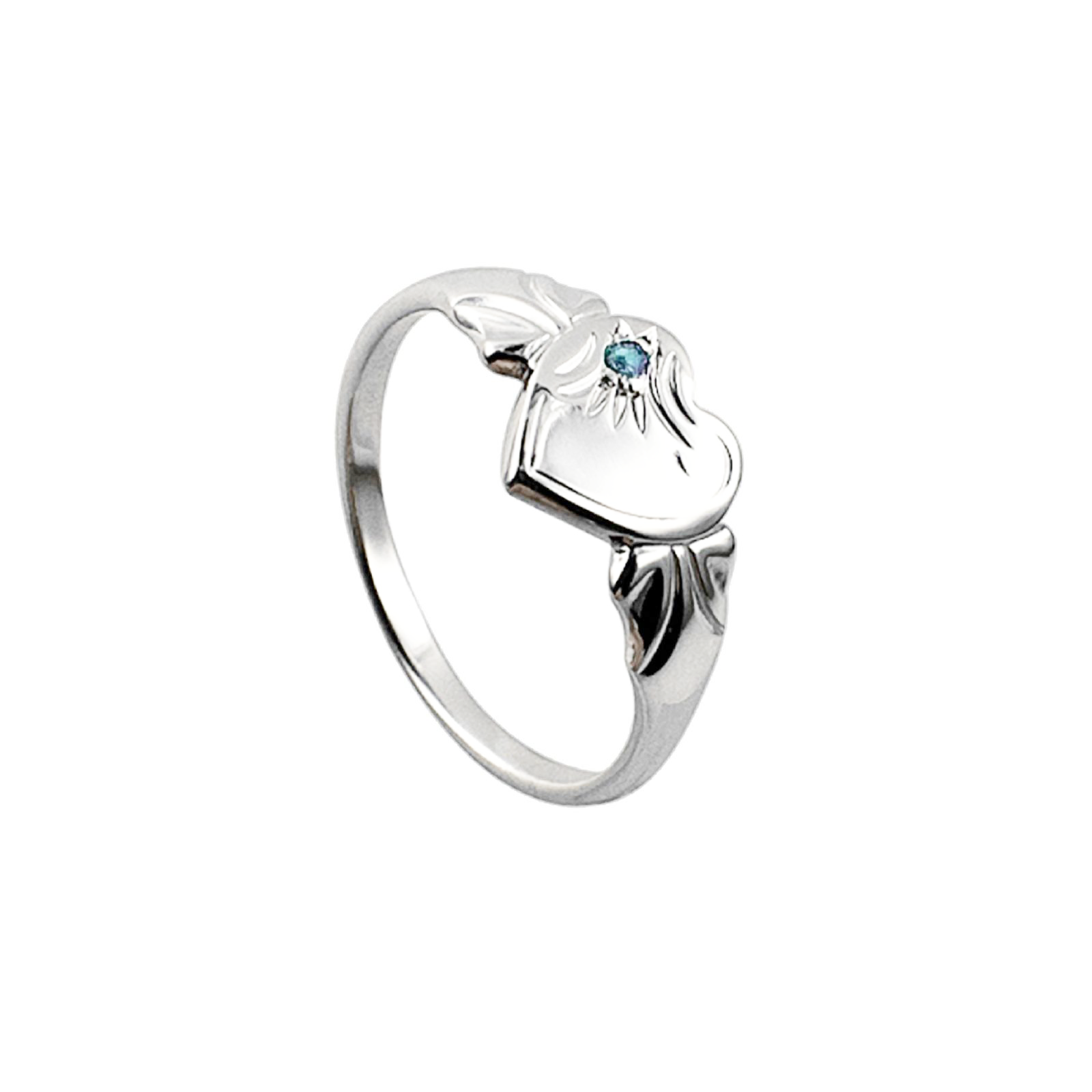 Sterling Silver Single Heart March Birthstone Signet Ring