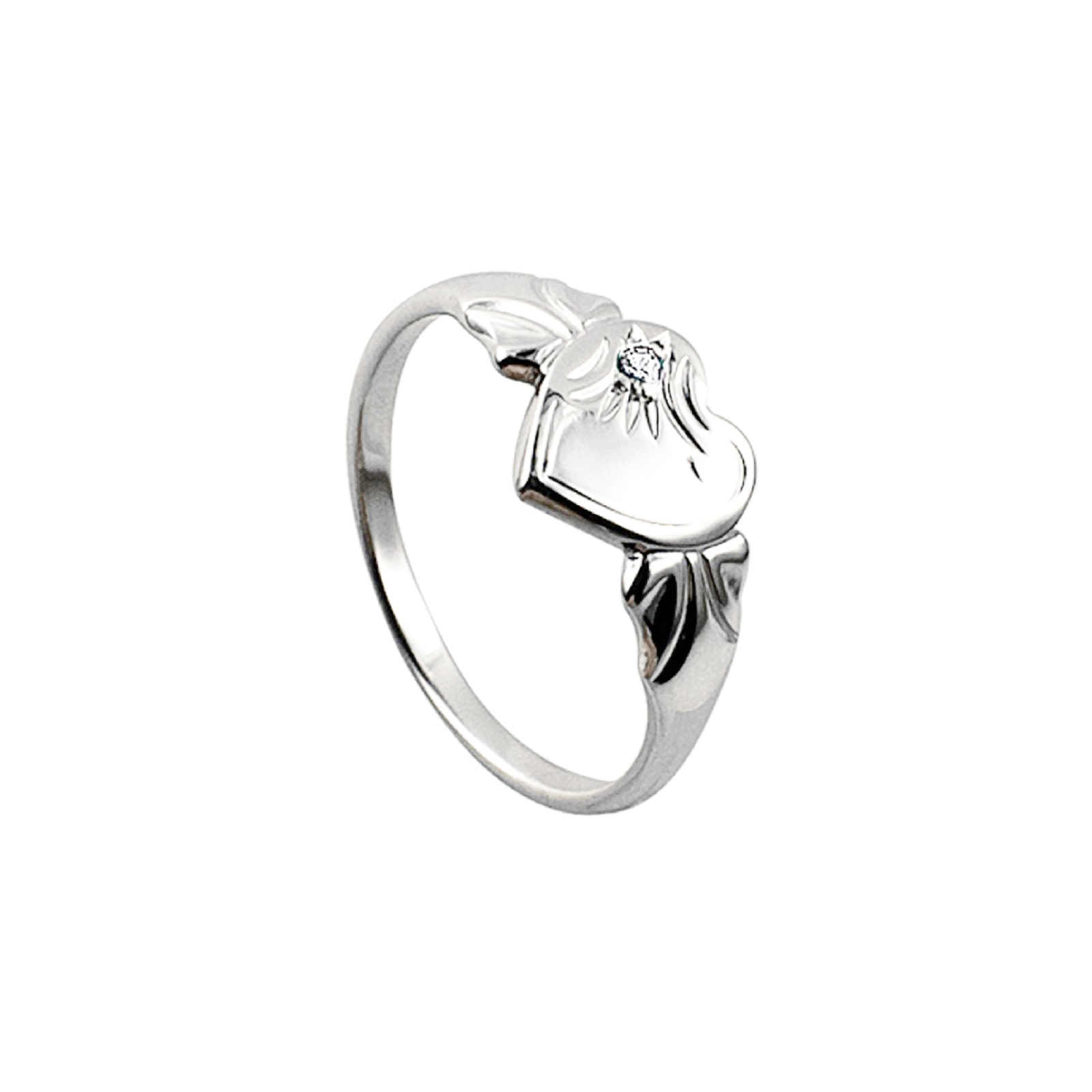 Sterling Silver Single Heart April Birthstone Signet Ring